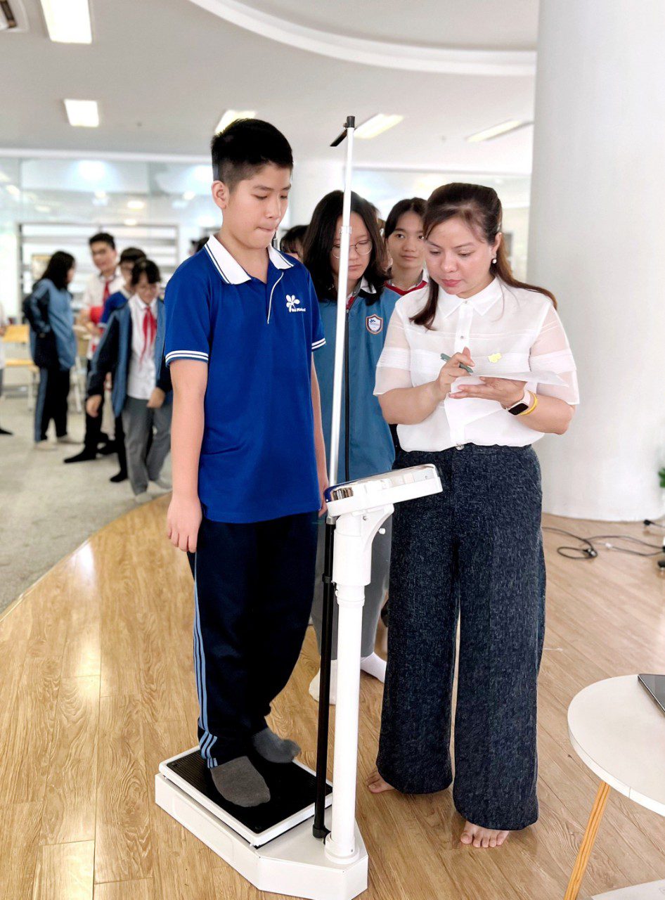 Cô giáo Nguyễn Thị Thanh Hà – GV Toán hướng dẫn học sinh đo chỉ số BMI