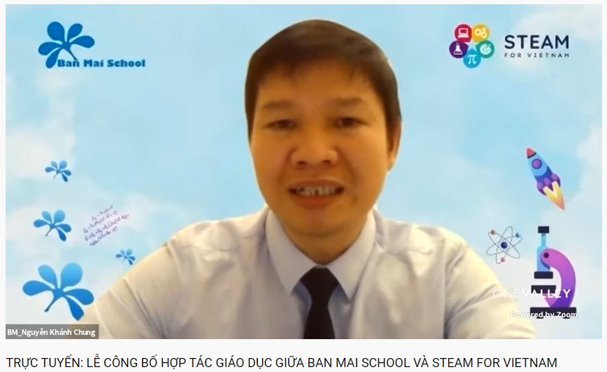 Thầy Nguyễn Khánh Chung – Hiệu trưởng Trường THCS – THPT Ban Mai phát biểu trong lễ ký kết: “Sự kiện ký kết hợp đồng hợp tác ngày hôm nay đã mở ra một chương mới trong lộ trình đổi mới chương trình giáo dục của trường THCS-THPT Ban Mai nói chung và chương trình giáo dục STEM nói riêng. Từ năm học 2021-2022, học sinh của BMS sẽ được học tập chương trình STEAM như một môn học trong chương trình chính khoá với các bài giảng của các chuyên gia đến từ STEAM for Vietnam. Hình thức học tập cũng hoàn toàn mới mẻ, đó là blended learning và online merge offline learning. Với nội dung học tập thú vị, hiện đại có tính ứng dụng cao, các chuyên gia công nghệ cùng với sự phối hợp của thầy cô BMS, các con học sinh sẽ được thụ hưởng những bài học nhiều giá trị. STEAM cũng sẽ khơi nguồn và phát triển đam mê công nghệ, mở ra những định hướng nghề nghiệp của tương lai.”