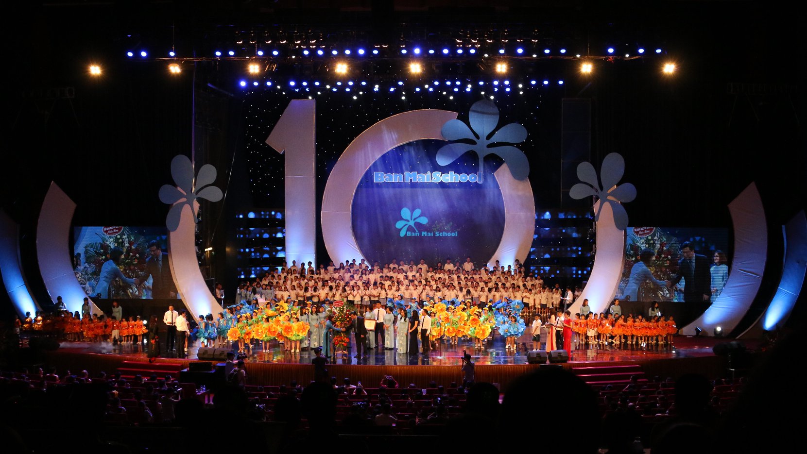 Cùng nhìn lại một số hình ảnh đáng ấn tượng với sự tham gia biể diễn của gần 2000 học sinh Ban Mai tại sân khấu Trung tâm Hội nghị Quốc Gia: