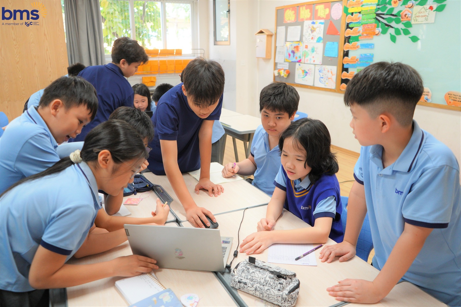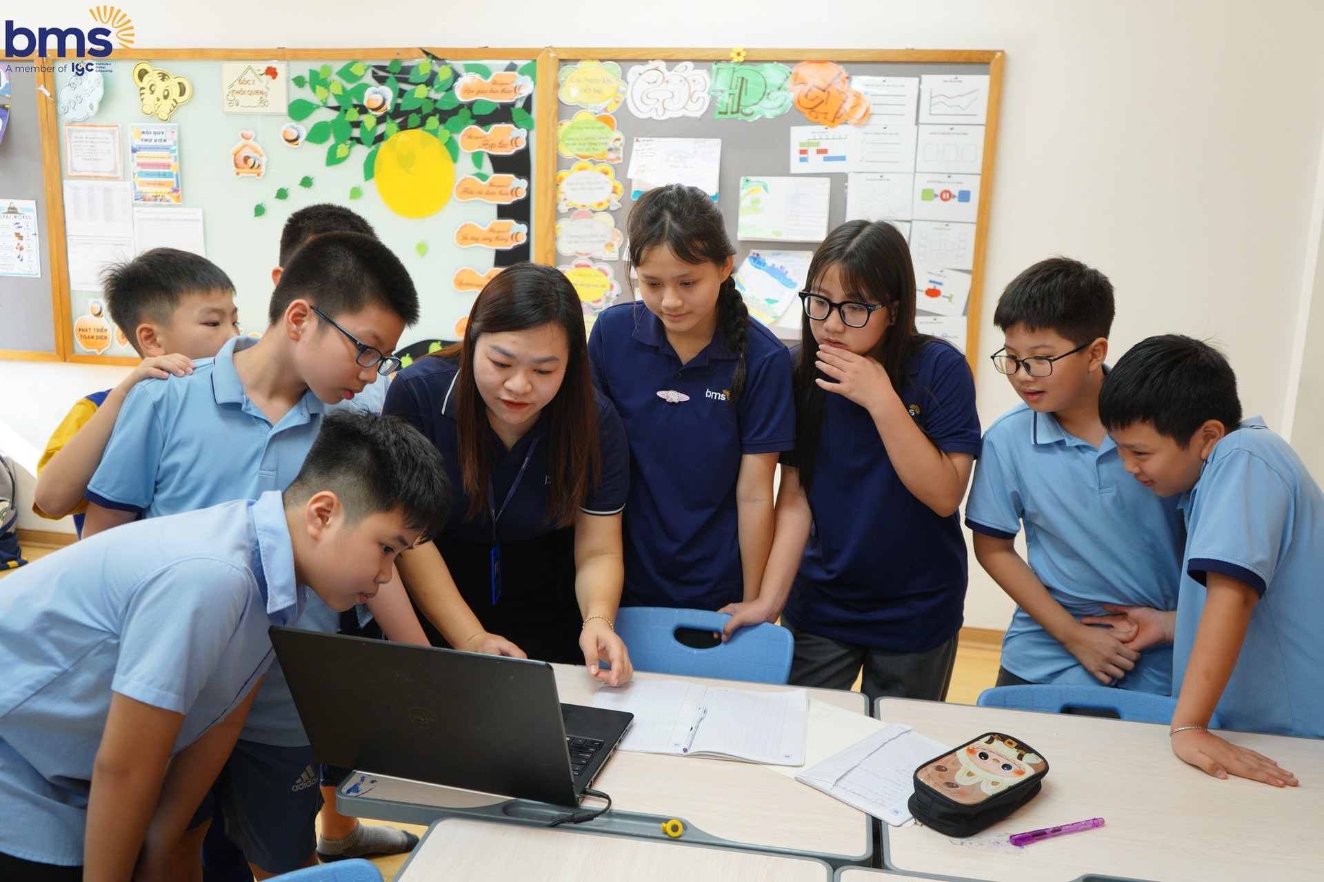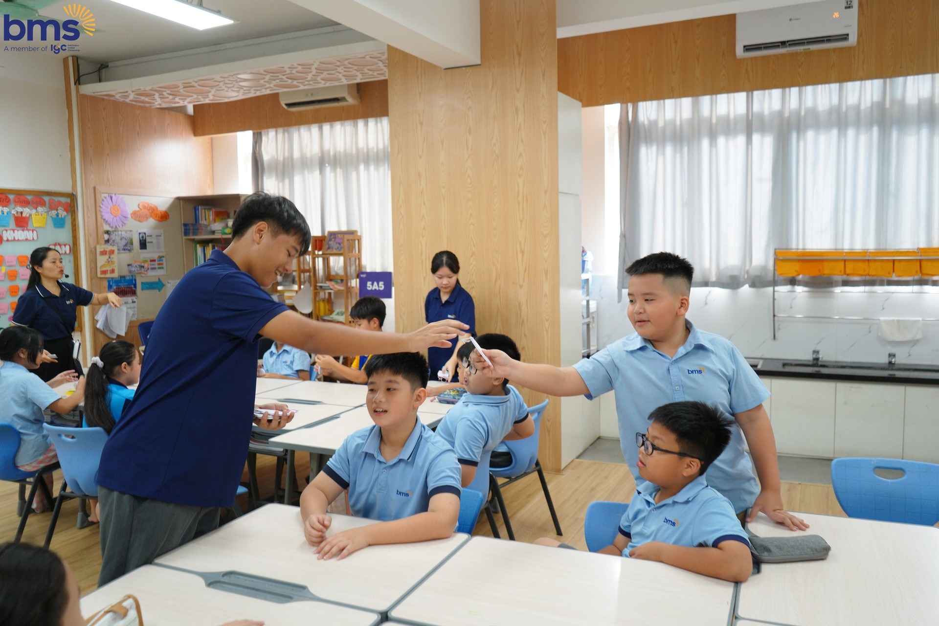 Ngoài sự hướng dẫn của Thầy cô, các anh chị trợ giảng từ Trường THCS Ban Mai cũng đóng vai trò quan trọng trong việc giúp các bạn học sinh lớp 5 làm quen với phương pháp học mới. Các anh chị hướng dẫn, đồng hành, chia sẻ những kinh nghiệm học tập giúp các em càng thêm tự tin và mạnh dạn hơn trong việc học hỏi.