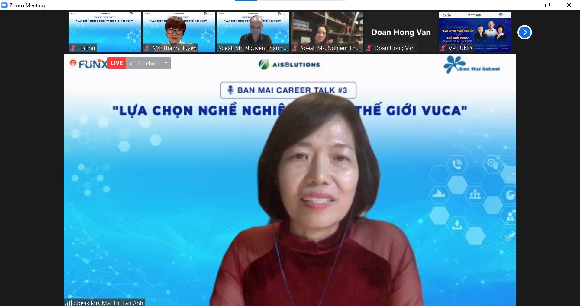 Ngày 16/10 vừa qua, Trường THCS – THPT Ban Mai phối hợp với Tổ chức giáo dục trực tuyến FUNiX tổ chức chương trình BAN MAI CAREER TALK #3 – “LỰA CHỌN NGHỀ NGHIỆP TRONG THẾ GIỚI VUCA”.