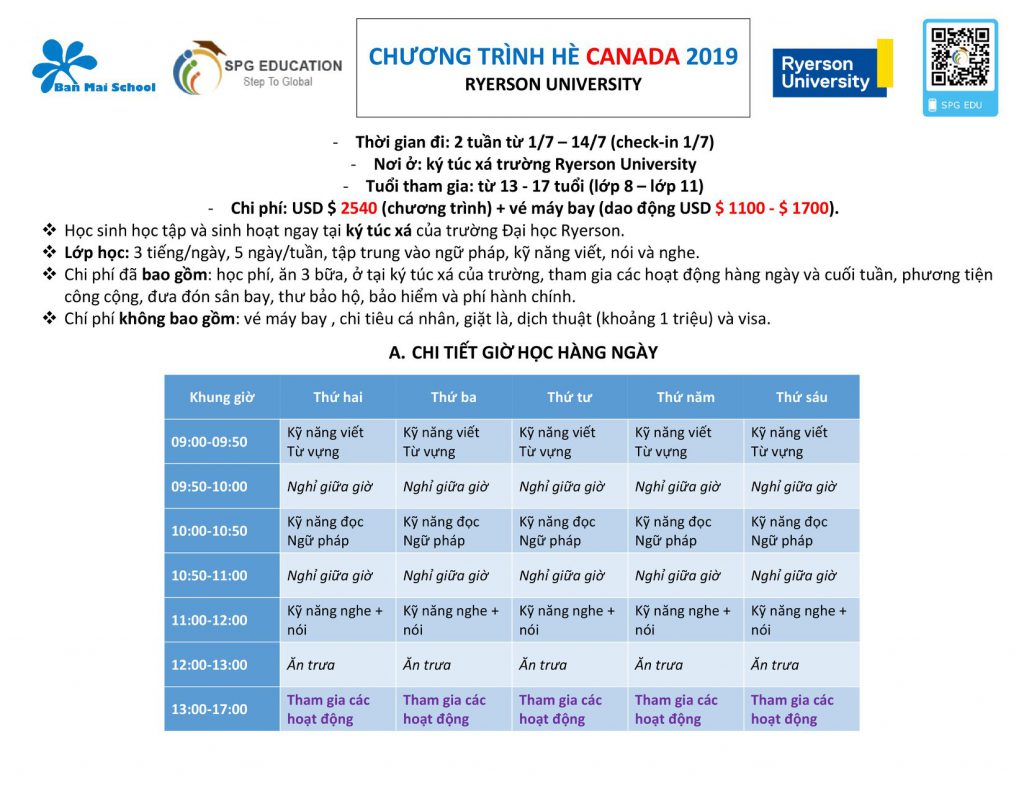 Đây là lần chương trình Hè được hợp tác với các trường tại 7 quốc gia: Thailand, Singapore, Philippines, New Zealand, Canada, England, USA. Thông tin các chương trình như sau: