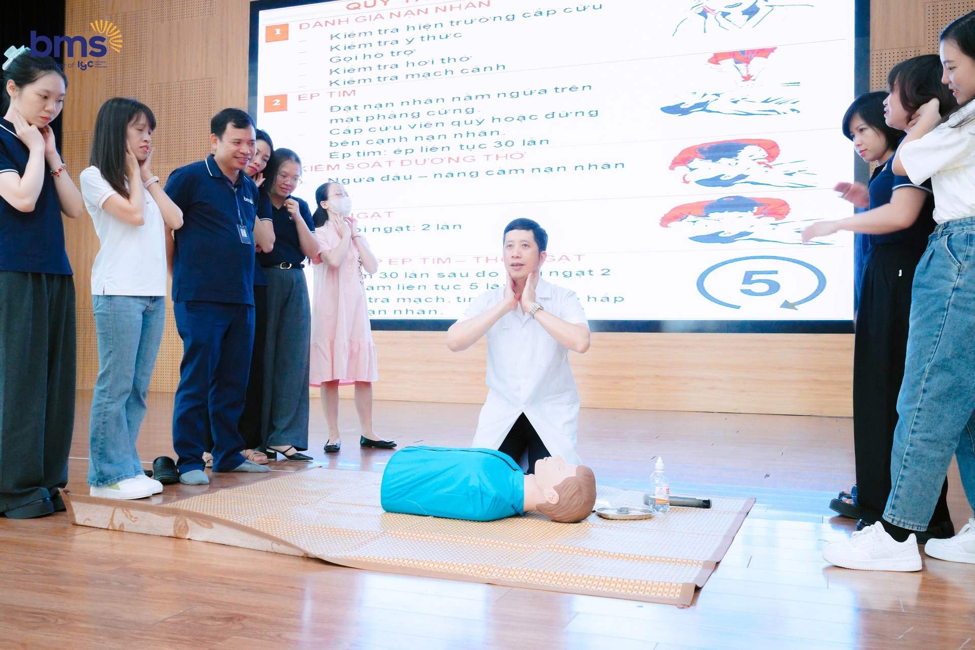 BMS Hà Nội: Trường THCS – THPT Ban Mai tổ chức chương trình tập huấn sơ cấp cứu dành cho cán bộ, giáo viên và nhân viên, nhằm nâng cao kỹ năng xử lý tình huống, đảm bảo an toàn cho học sinh và xây dựng môi trường học đường an toàn, hạnh phúc.
