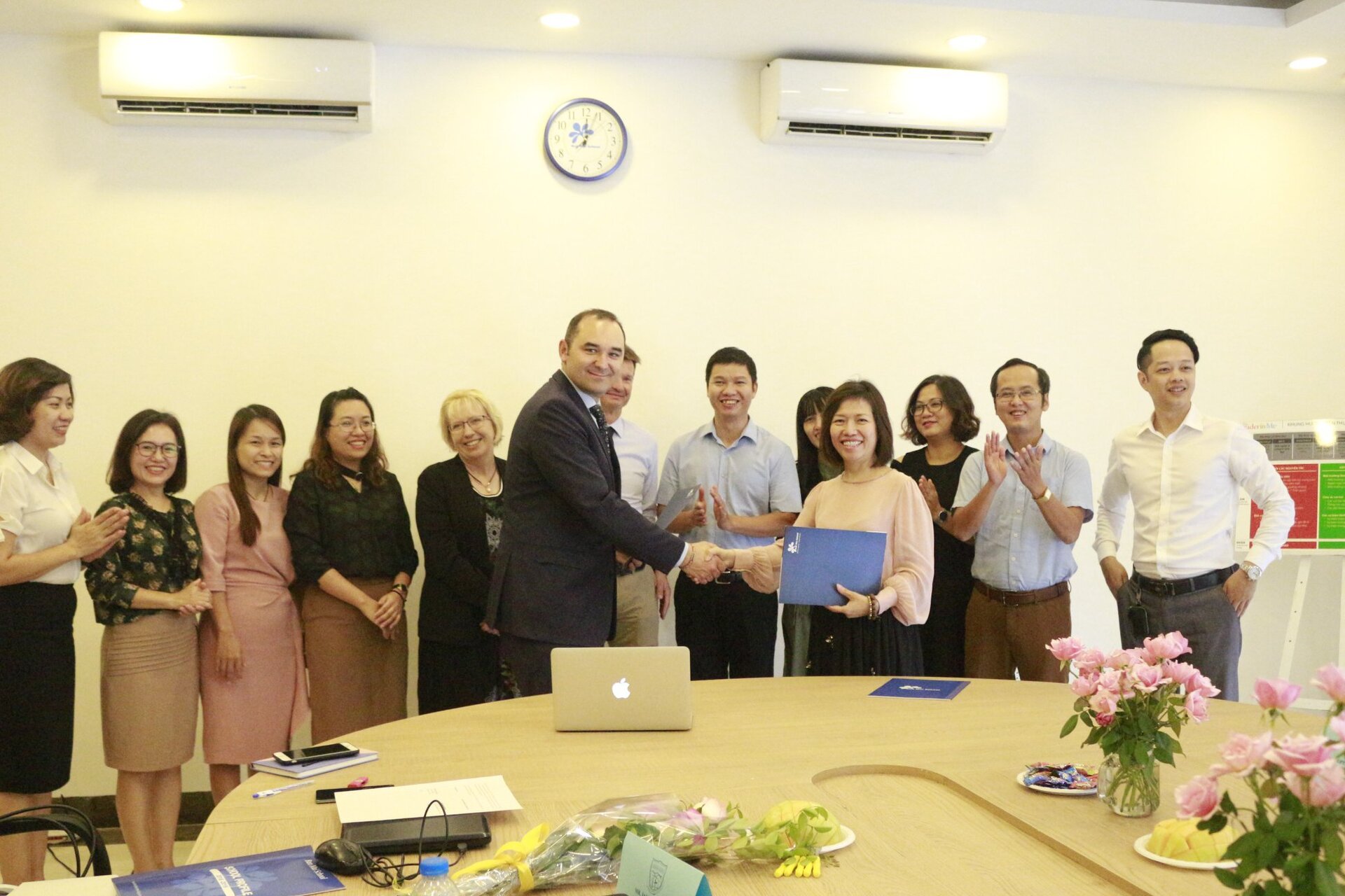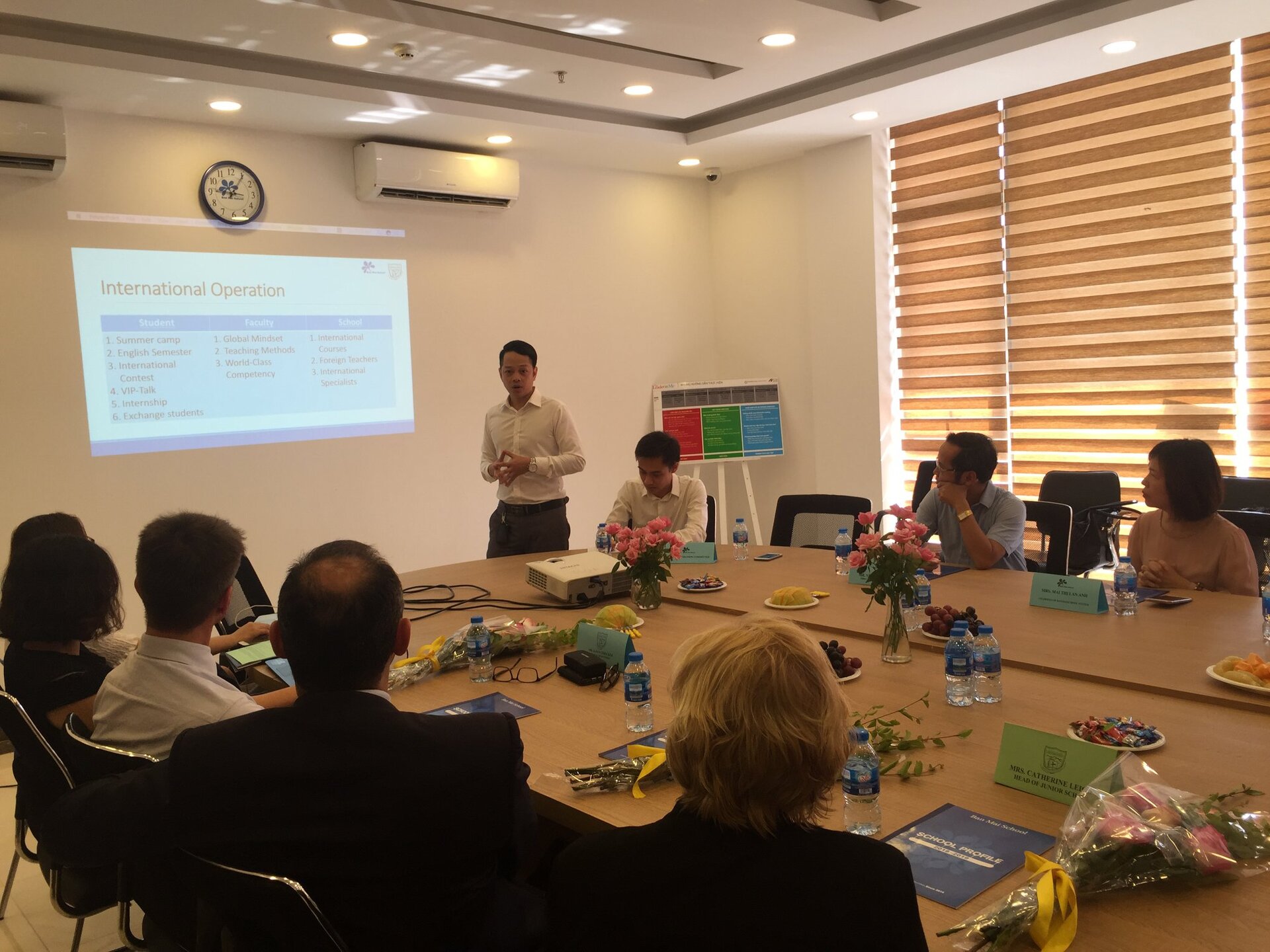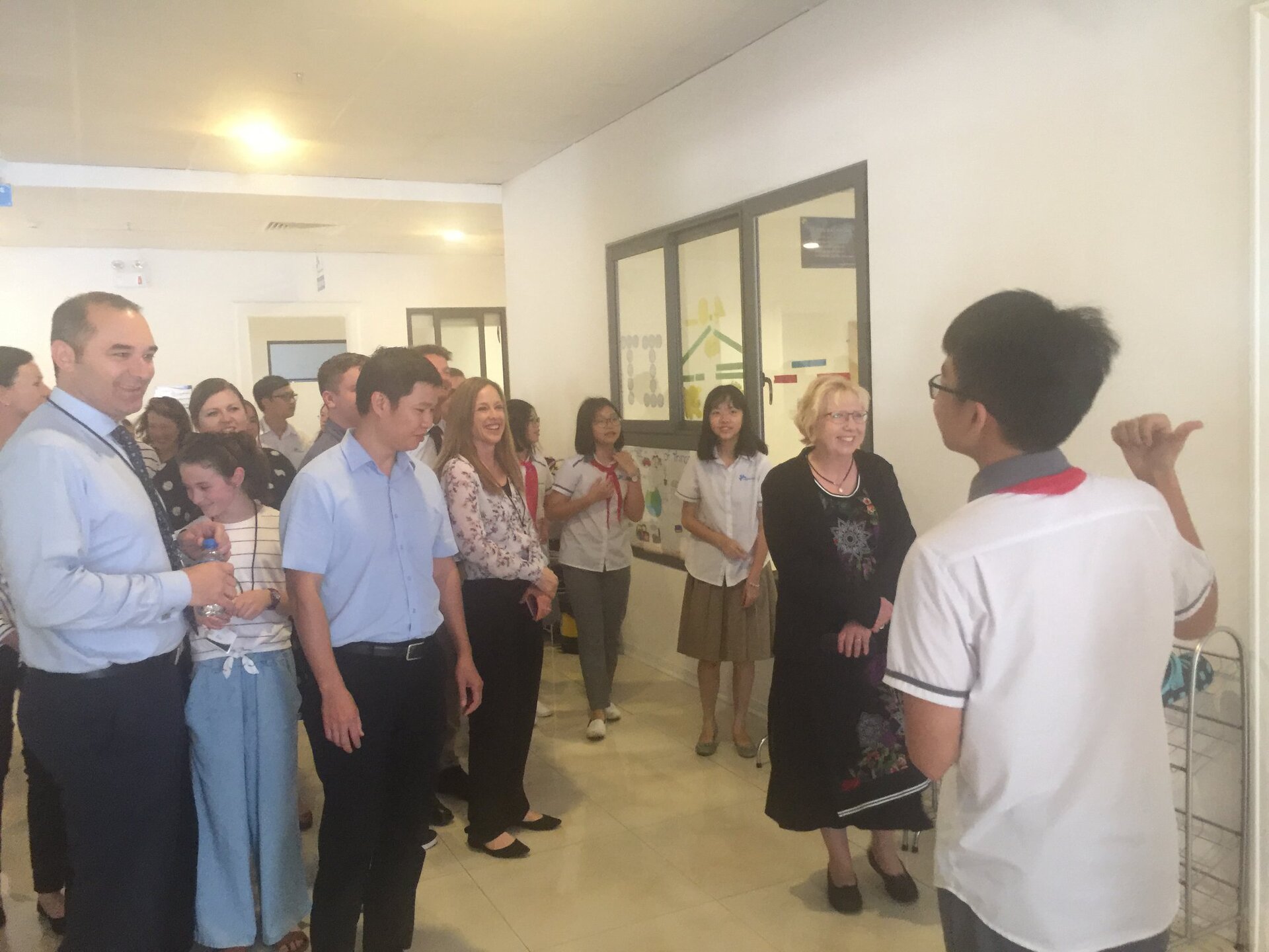 Thầy Hiệu trưởng Andrew Middleton và các Thầy Cô trong Đoàn được Ban Mai chào đón nồng hậu và thân thiện