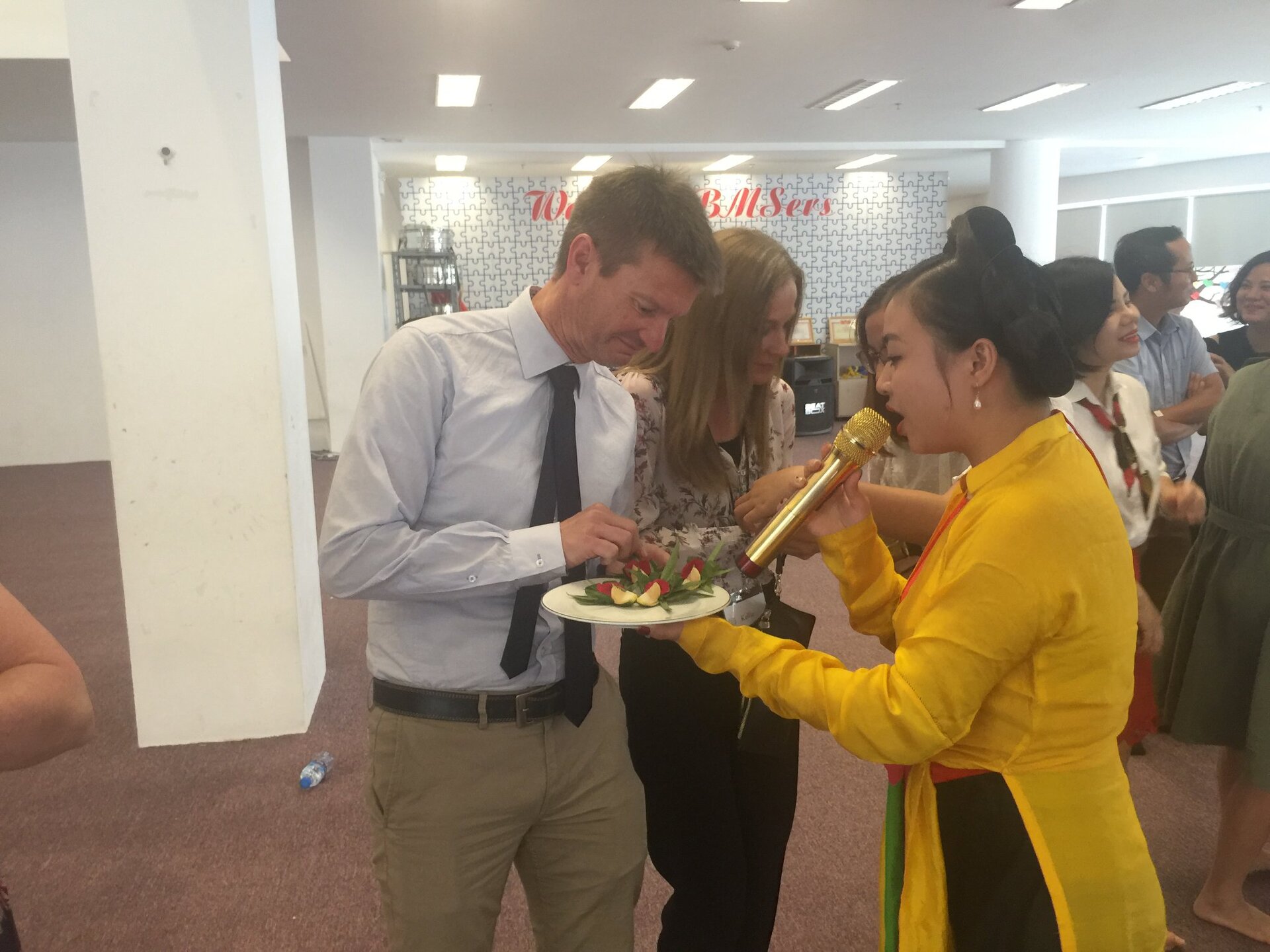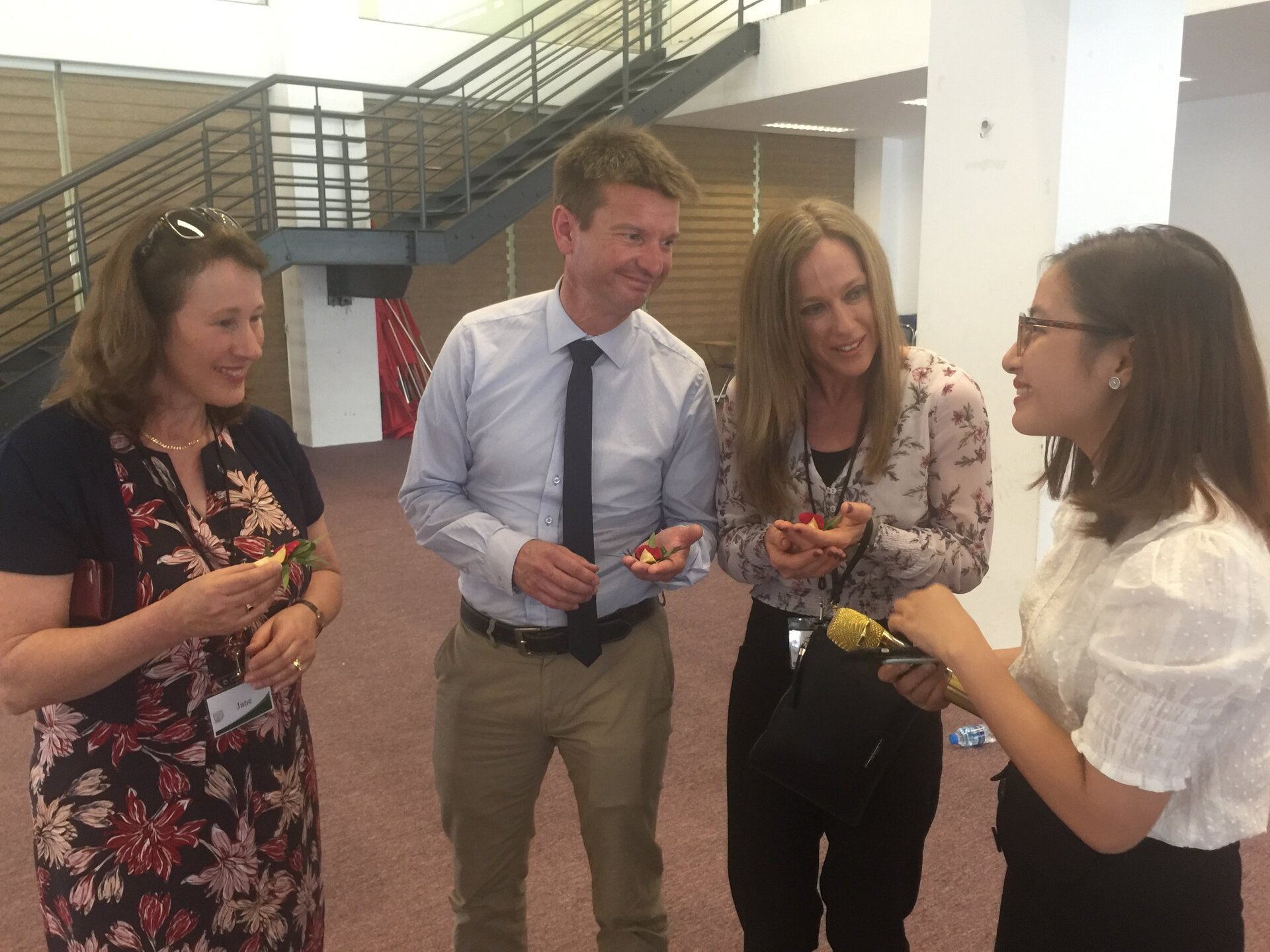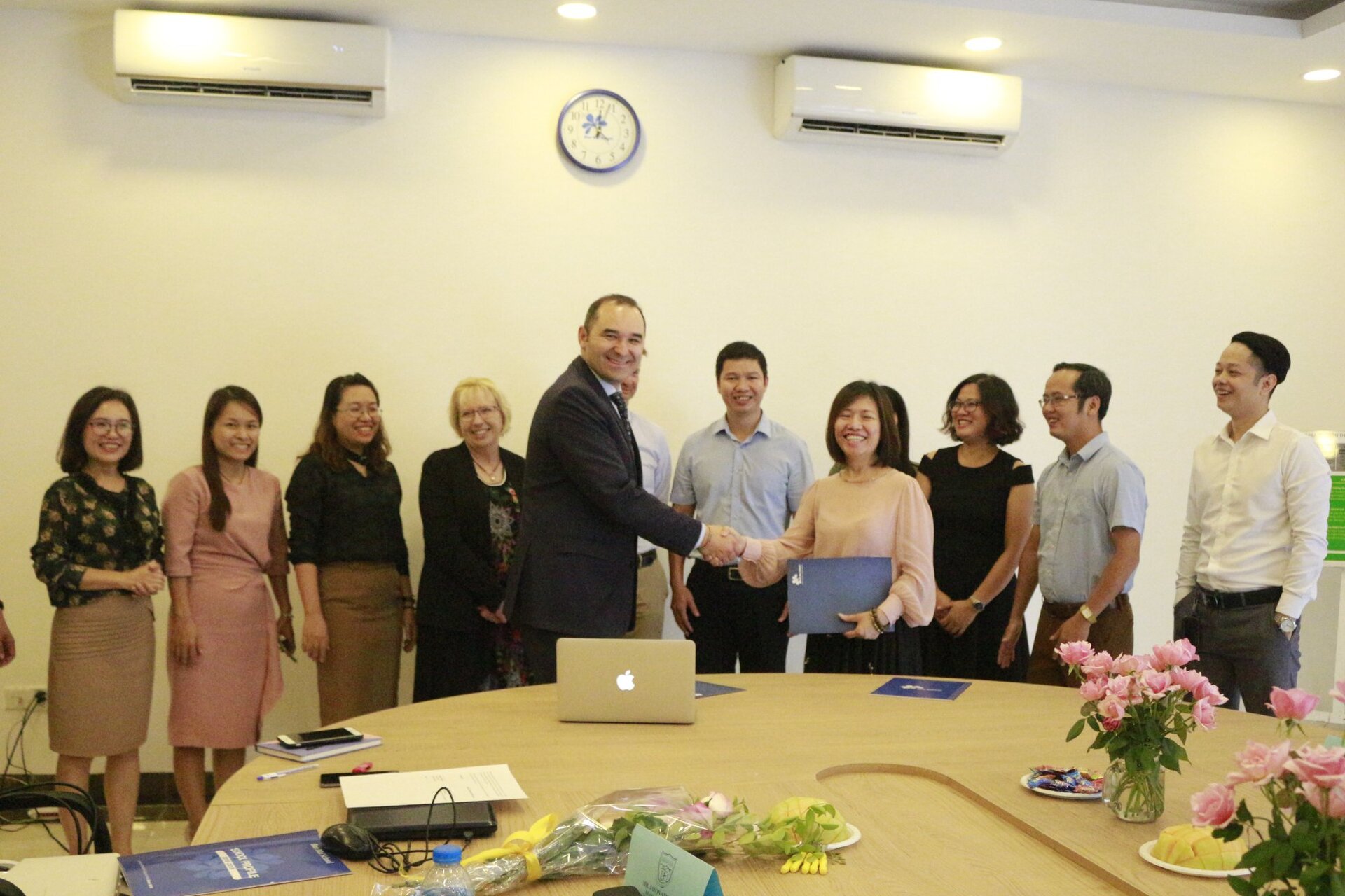 Thầy Hiệu trưởng Andrew Middleton và các Thầy Cô trong Đoàn được Ban Mai chào đón nồng hậu và thân thiện