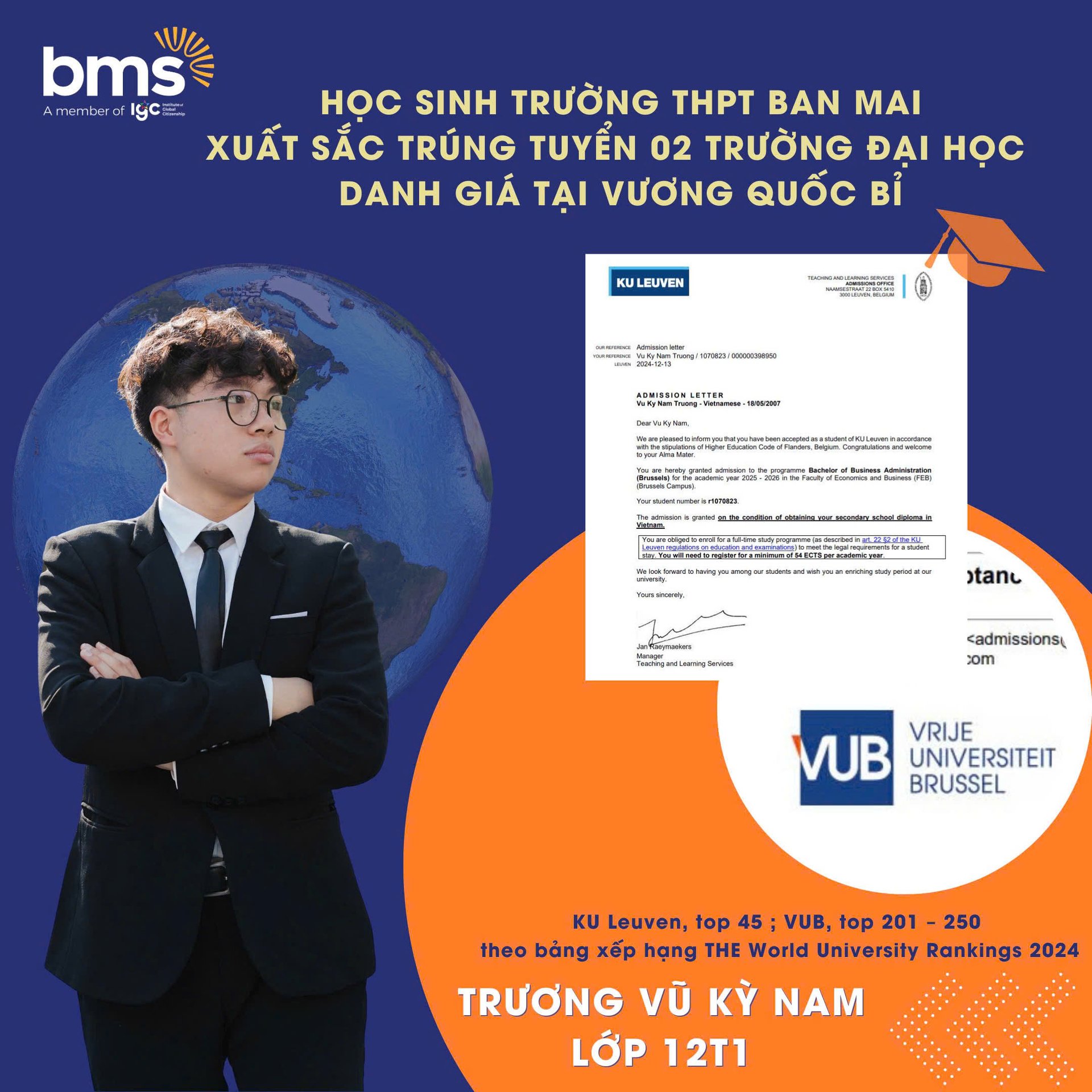 Đại học KU Leuven đã mở ra chương mới trong cuộc đời Kỳ Nam, đánh dấu sự ghi nhận xứng đáng cho những nỗ lực không ngừng nghỉ của cậu học trò tại ngôi trường BMS.