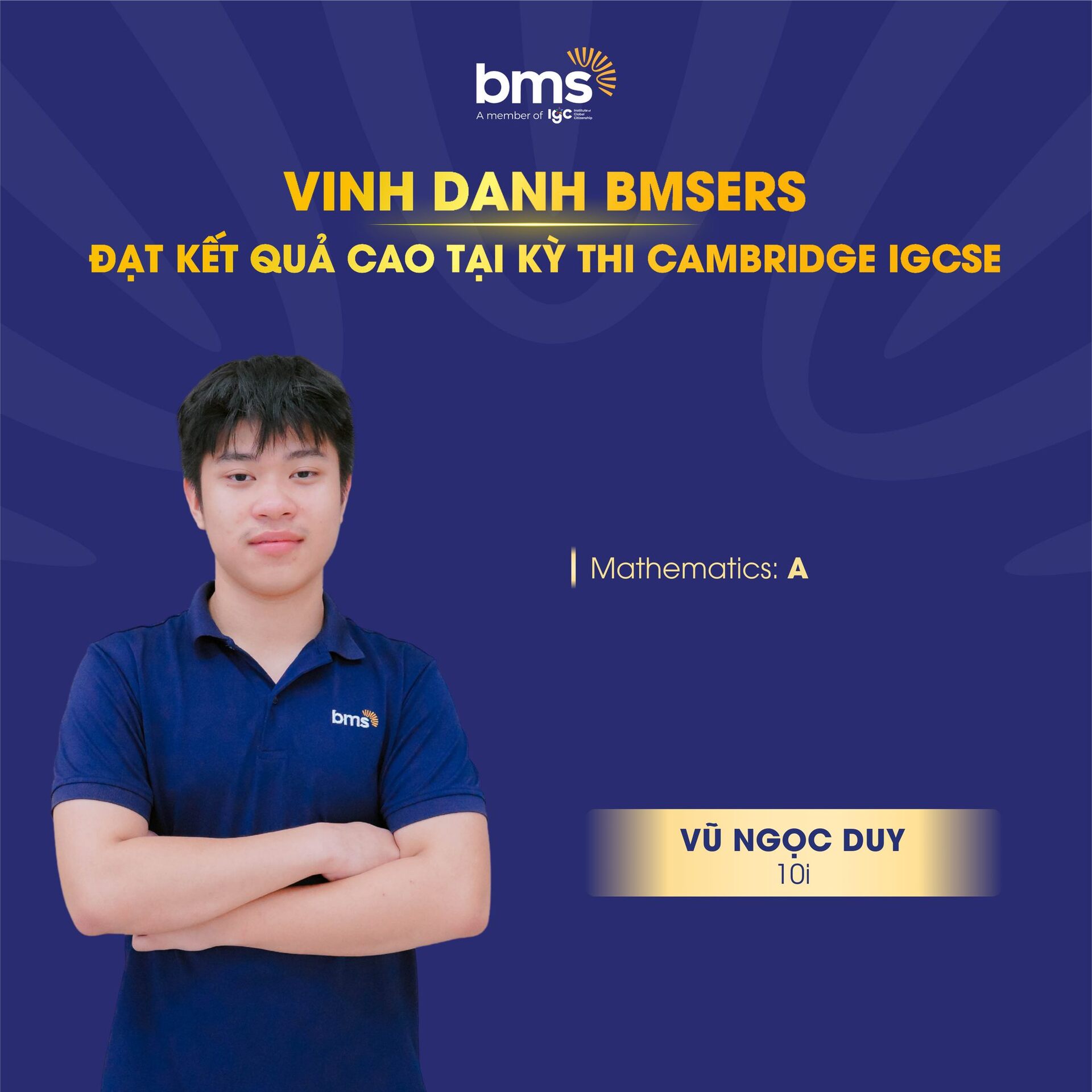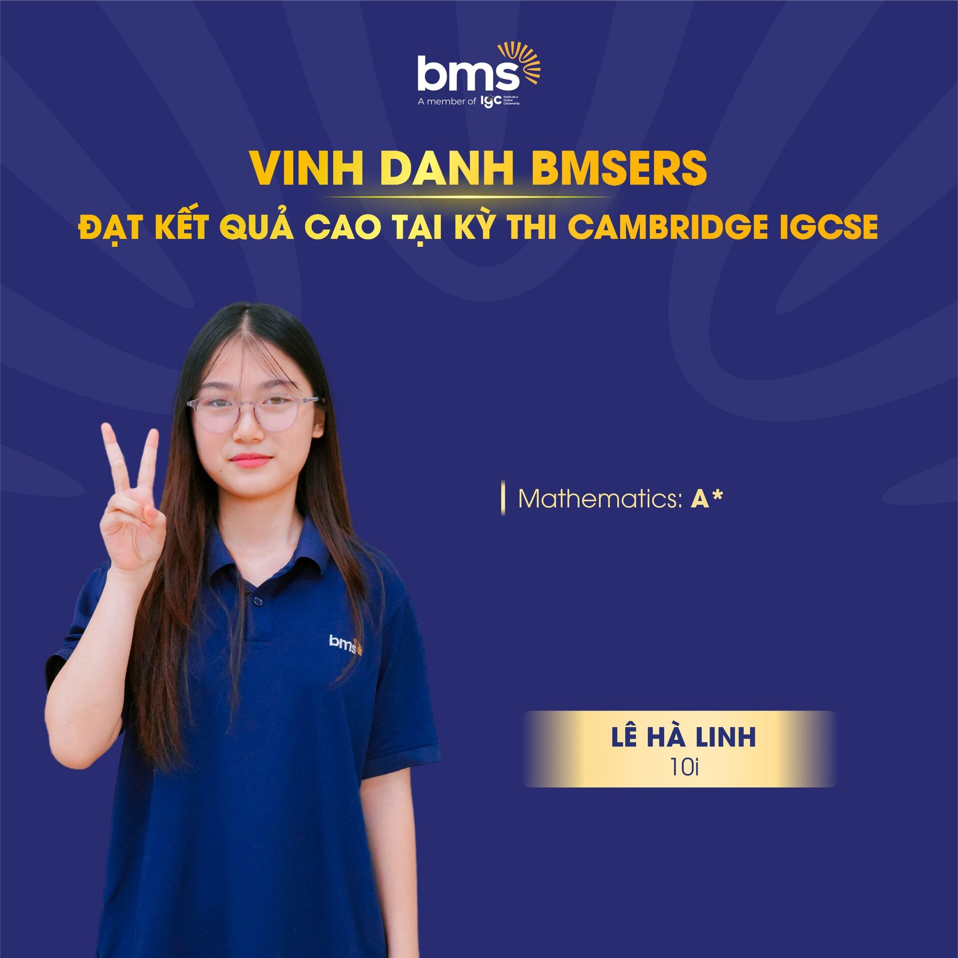 - Đặc biệt, BMSer Trịnh Đan Thu đã xuất sắc đạt trọn bộ điểm A* ở cả 3 môn gồm môn Mathematics, môn Combined Science và môn ESL.