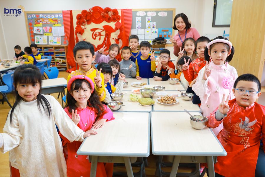 Năm 2025, với mong muốn tái hiện một gam màu Tết truyền thống đậm chất Hà Thành, BMS đã mang tới cho học sinh chuỗi hoạt động Tết cộng đồng 2025 đặc sắc với những hoạt động: Bánh chưng xanh – Thịt đông dưa hành, Bữa cơm đoàn viên, Hội Xuân – Ngã tư kẻ chợ.