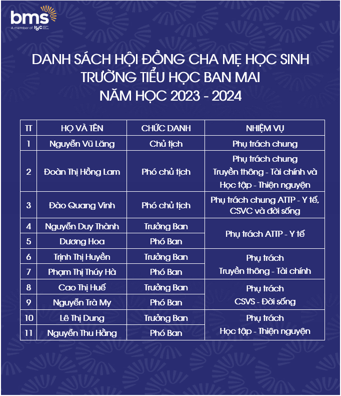 Đã trở thành thông lệ, mỗi một năm học mới, hoạt động Thành lập Hội đồng Cha Mẹ học sinh cấp trường luôn là sự kiện quan trọng và đặc biệt tại BMS.
