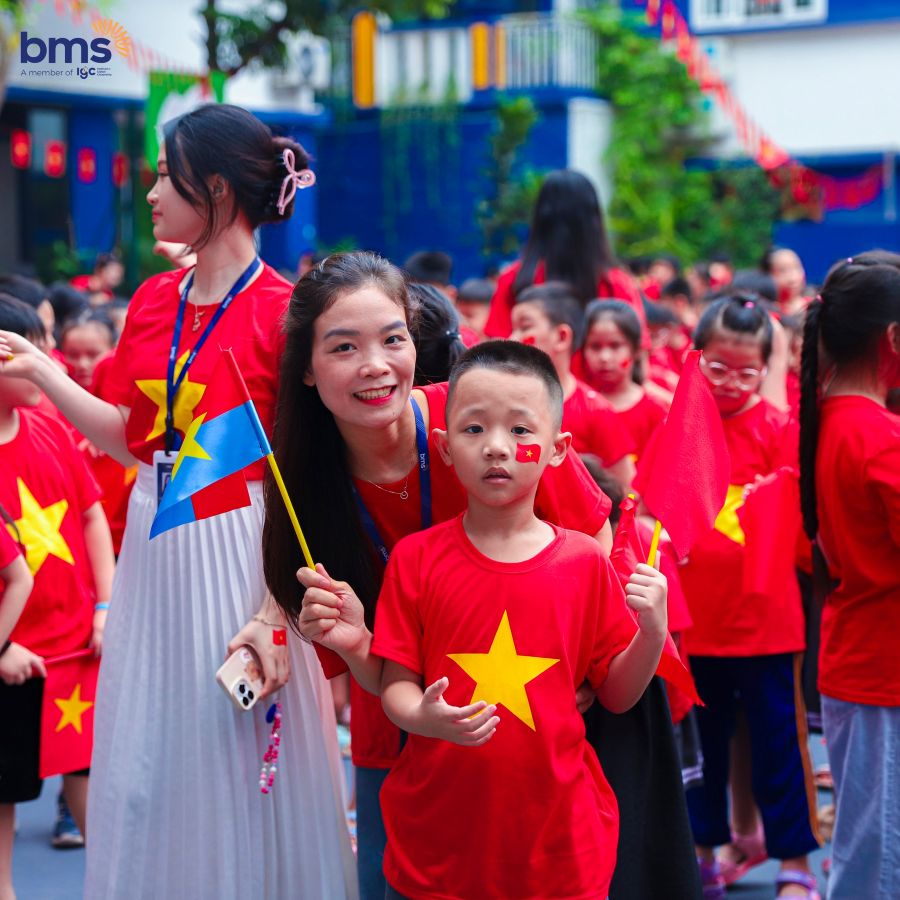 Tự hào là công dân Việt Nam, là những BMSers mang trong tim ngọn lửa yêu nước bền bỉ, cháy sáng mãi theo thời gian. Hôm nay, các em cười thật tươi, nắm tay nhau thật chặt, hát vang Quốc ca và cùng nhau thắp lên trong tim mình niềm tin, niềm tự hào về quê hương yêu dấu.