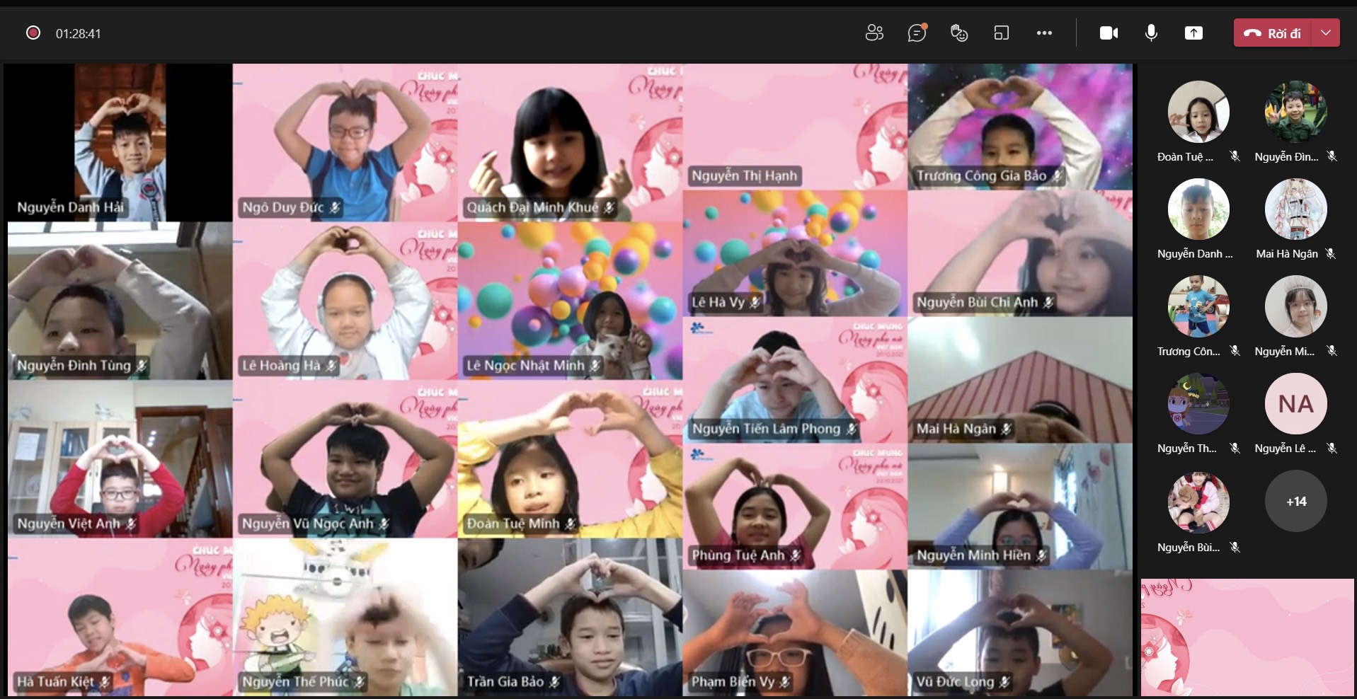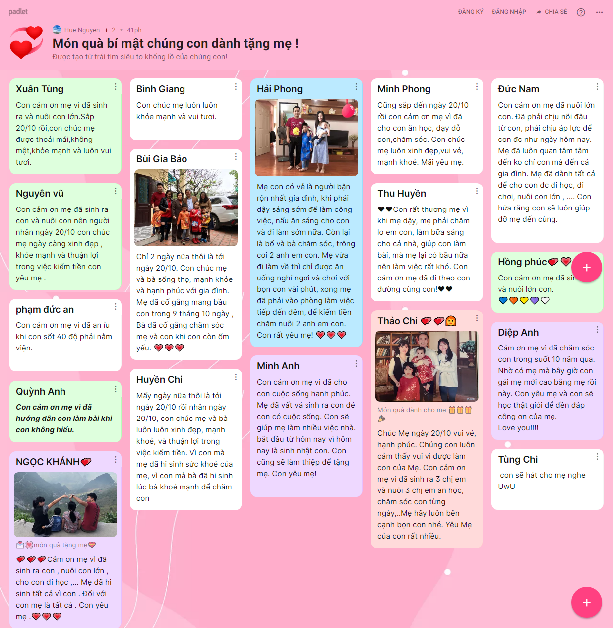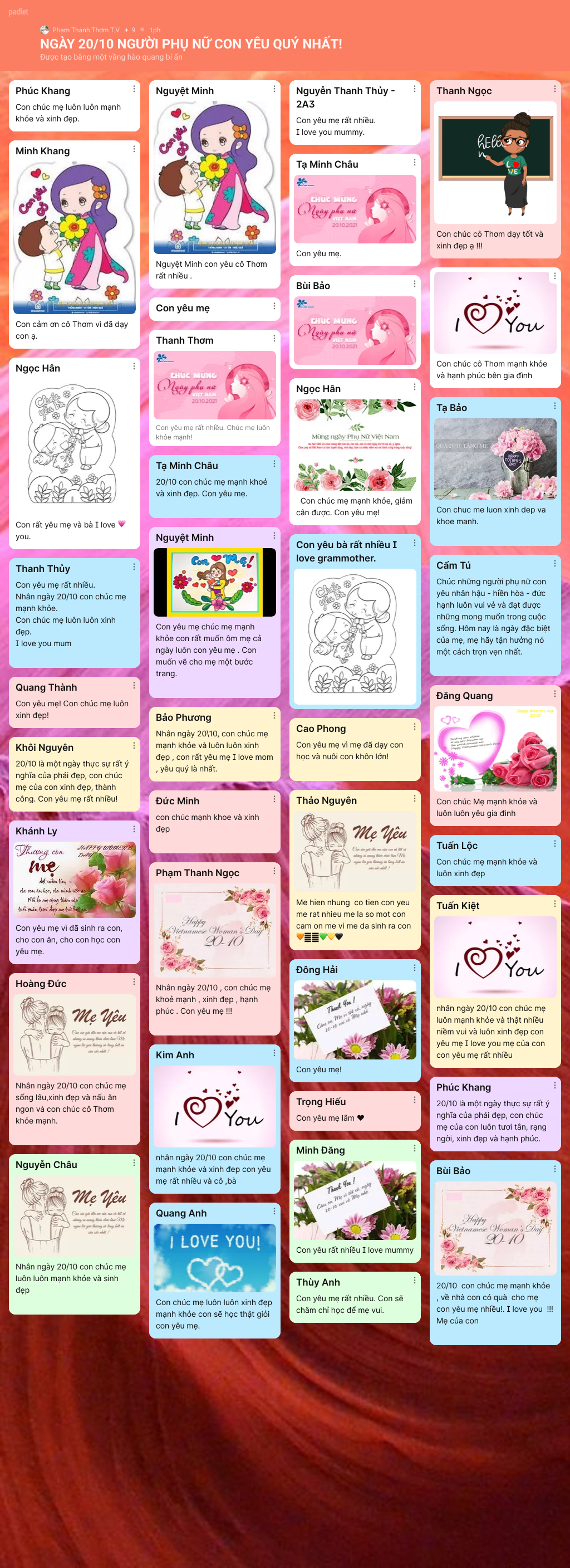 Những hình ảnh, lời chúc yêu thương được hơn 1500 BMSers các khối lớp chia sẻ trên trang palet đã lưu giữ lại nhiều điều ý nghĩa cho chính các con và những người phụ nữ con yêu thương trong ngày 20/10 năm nay.