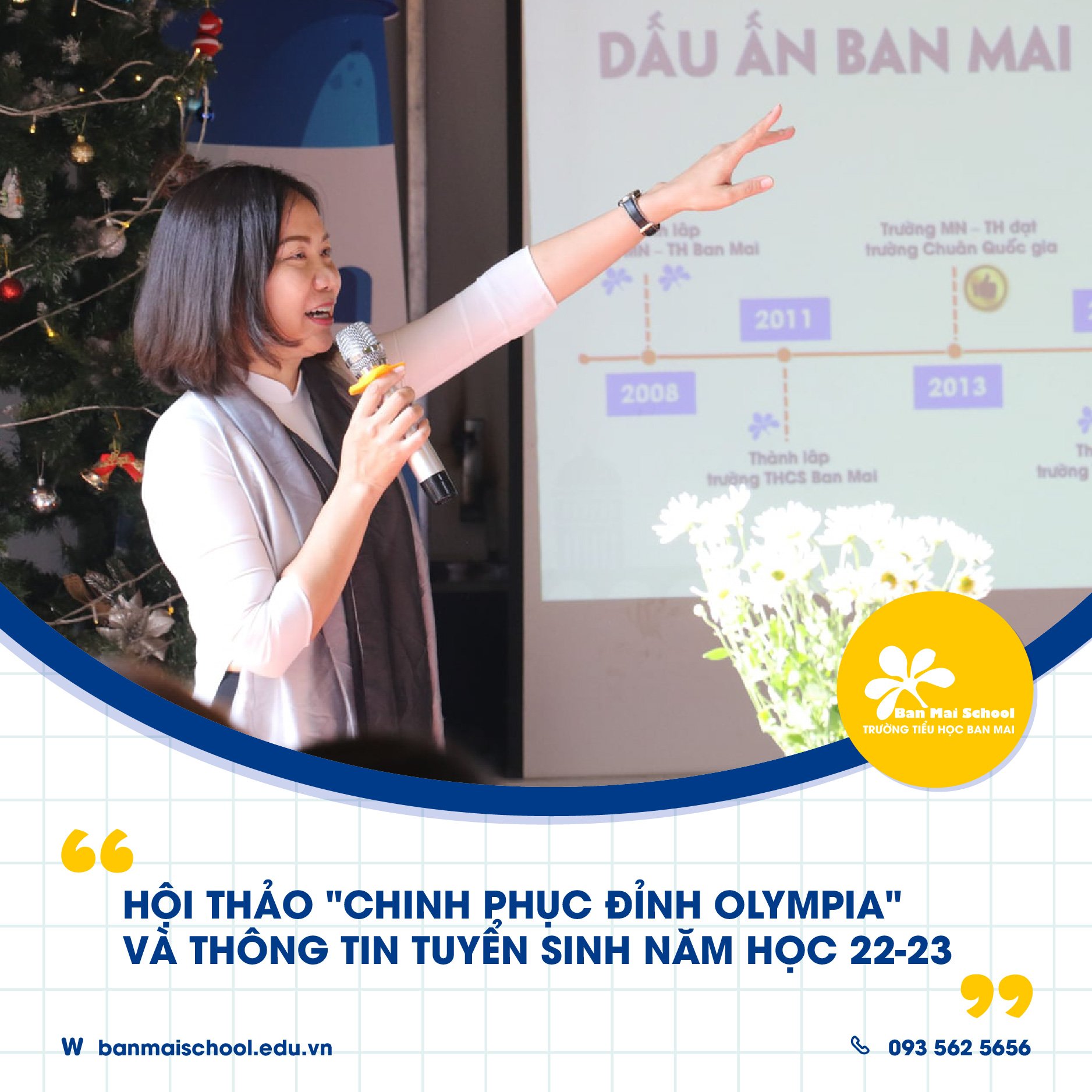 Hội thảo “Chinh phục đỉnh Olympia” với chủ đề chính xoay quanh niềm tự hào chương trình Thành tích cao tại Ban Mai và những tư vấn tâm lý về cách cân bằng cho con trong giai đoạn chuyển cấp là cơ hội để Quý Cha mẹ giao lưu trực tiếp cùng các diễn giả hàng đầu ngành Giáo dục tại Ban Mai School. Bên cạnh đó, CMHS sẽ được nắm bắt đầy đủ thông tin tuyển sinh năm học 2022 – 2023 của nhà trường.
