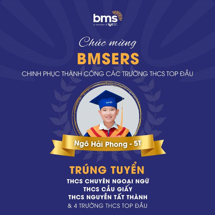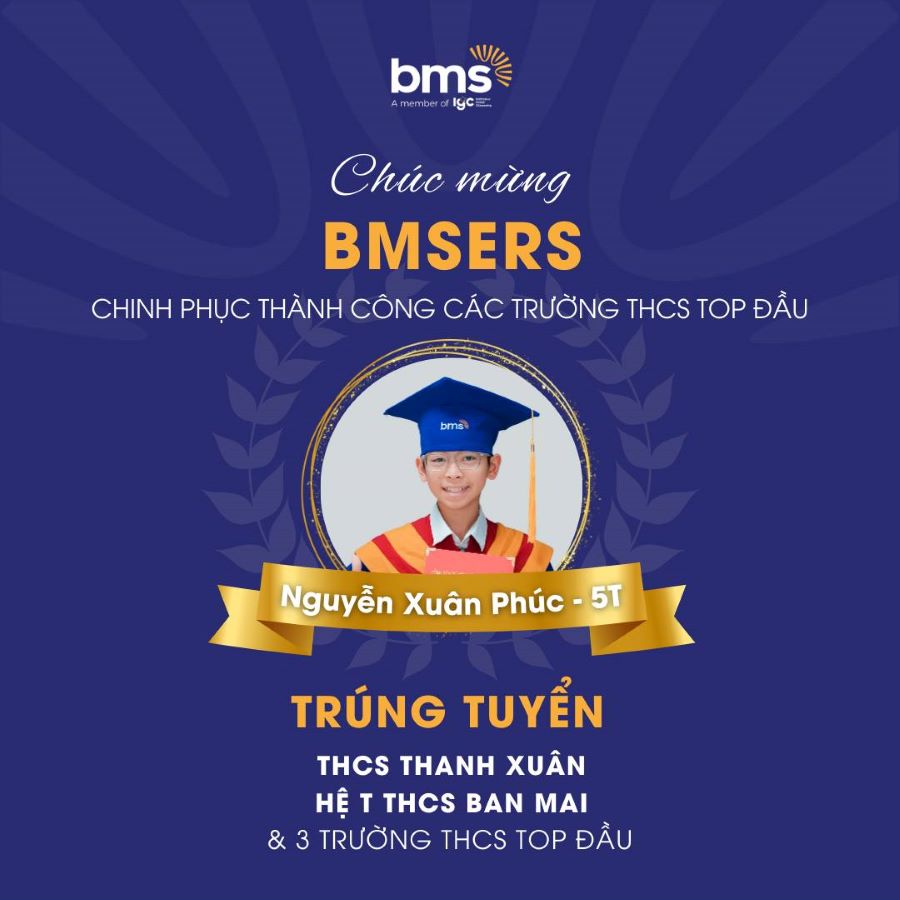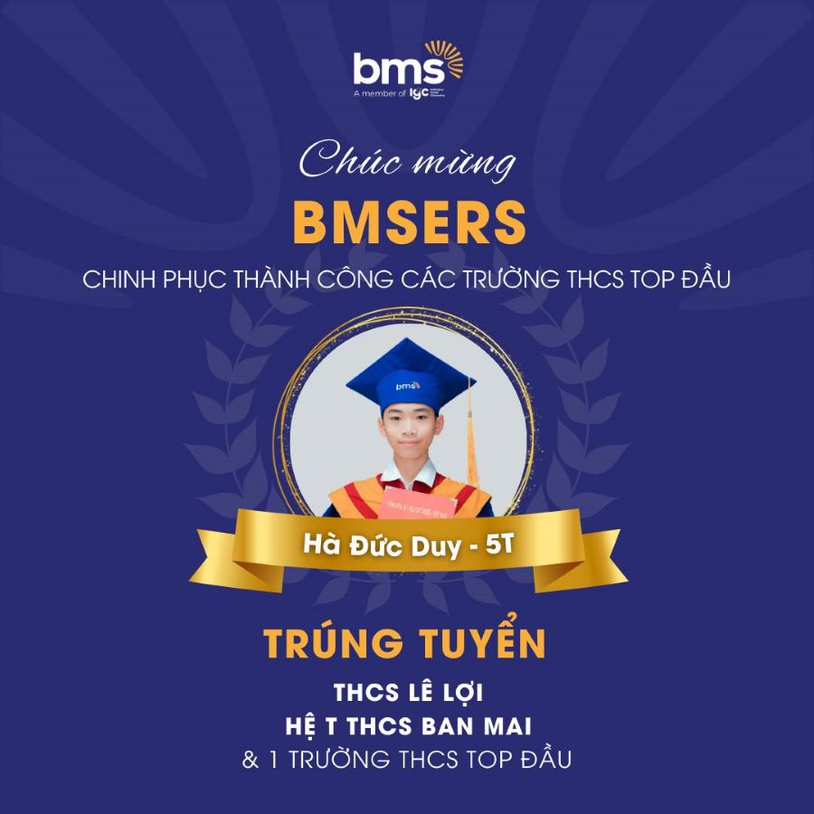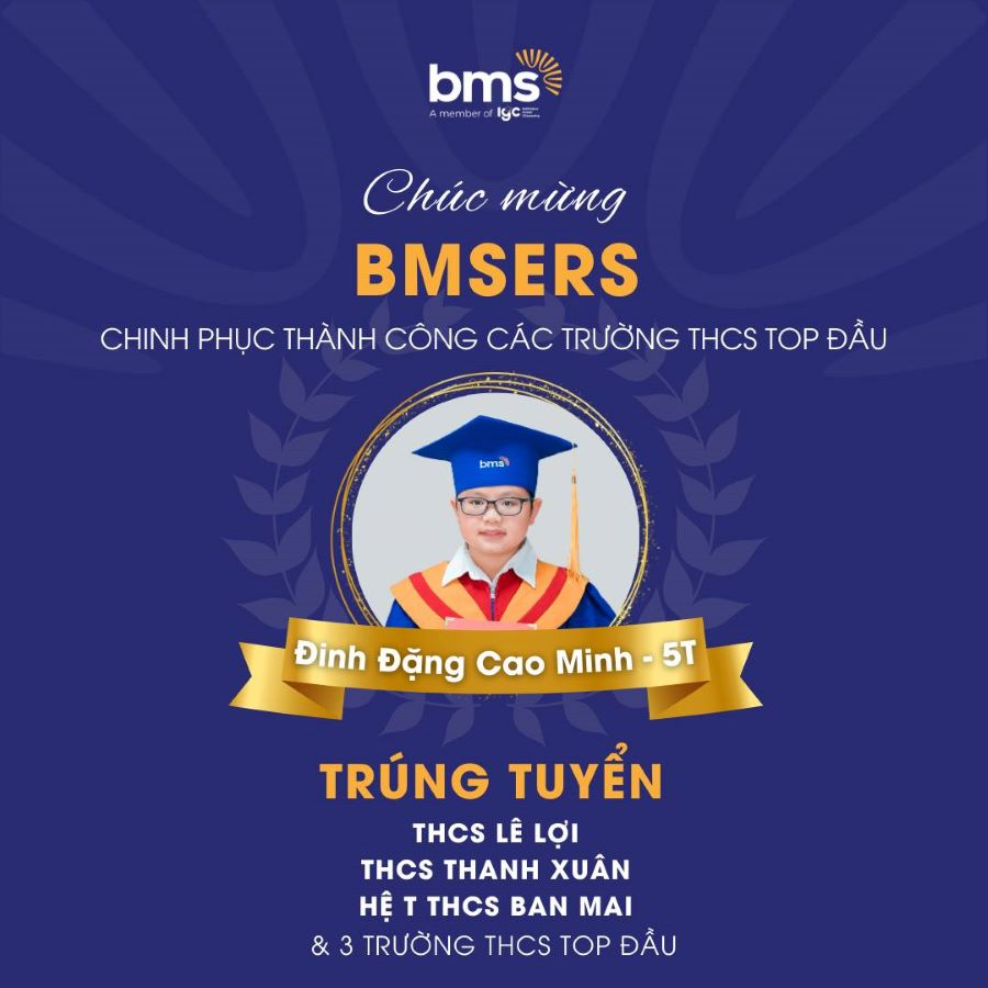 Những thành tích ấn tượng này là kết quả của quá trình nỗ lực không ngừng của các em trong những năm học tại BMS; cùng với sự hỗ trợ, đồng hành của Gia đình và thầy cô giáo. BMS chúc mừng những "chiến binh" tài năng! Chúc các em luôn tỏa sáng rực rỡ và gặt hái được thật nhiều thành công trên con đường của riêng mình.