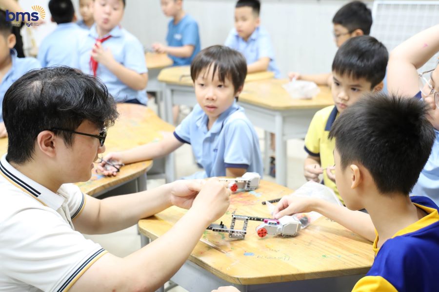 CLB Robotic, công nghệ là điểm nóng thu hút những BMSers yêu thích khoa học và công nghệ. Trong khóa học, các em đã được làm quen với việc lắp ráp robot và triển khai câu lệnh lập trình... Đây còn là nơi để các em phát triển tư duy, kỹ năng suy luận logic và khả năng giải quyết vấn đề.