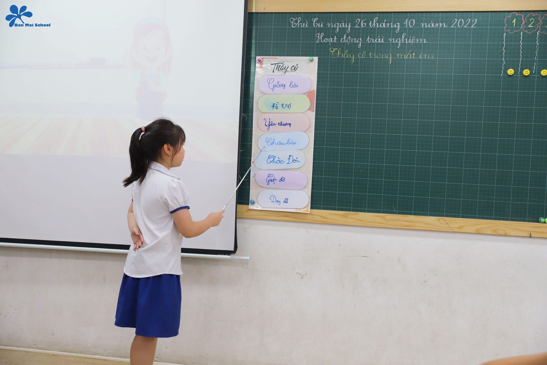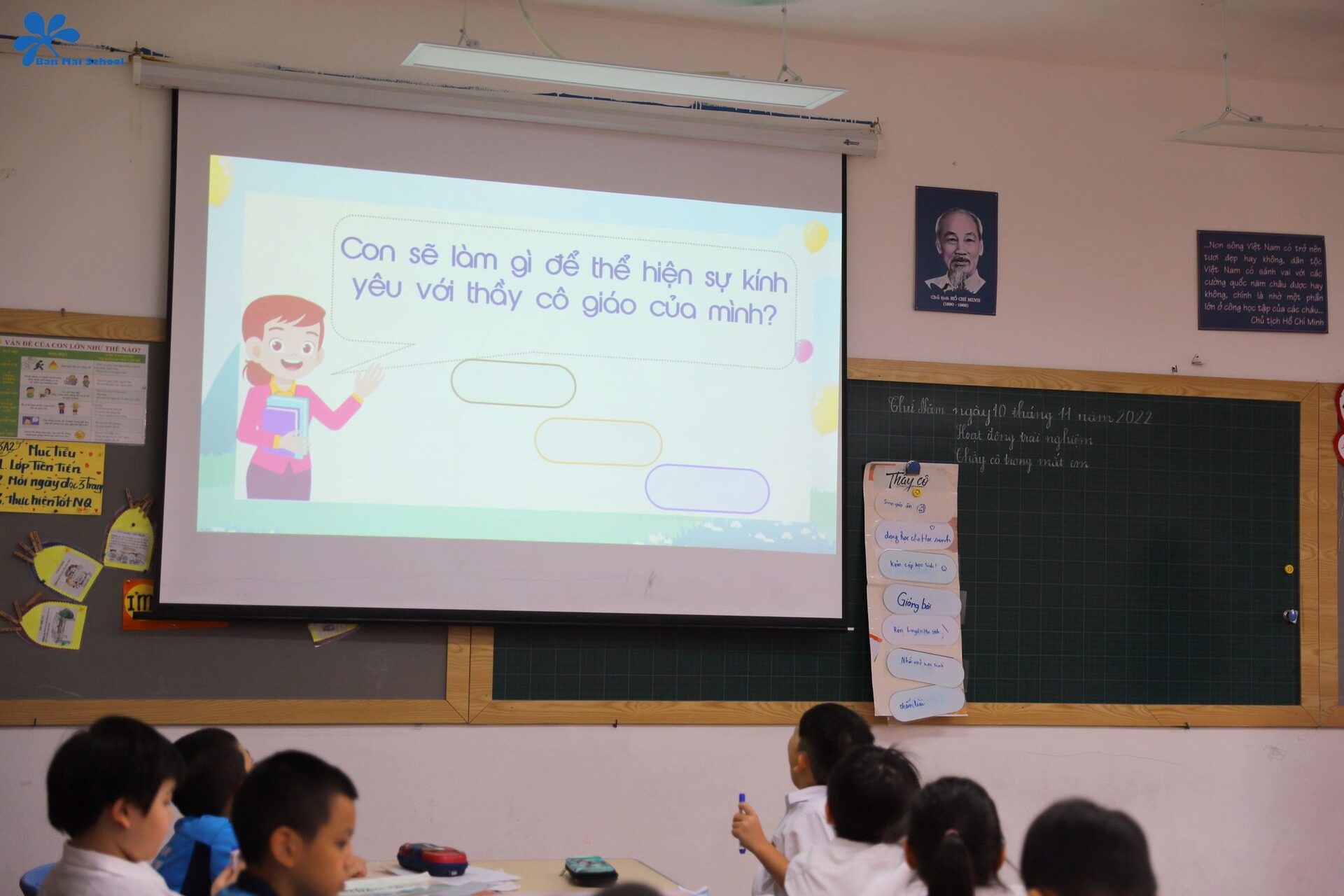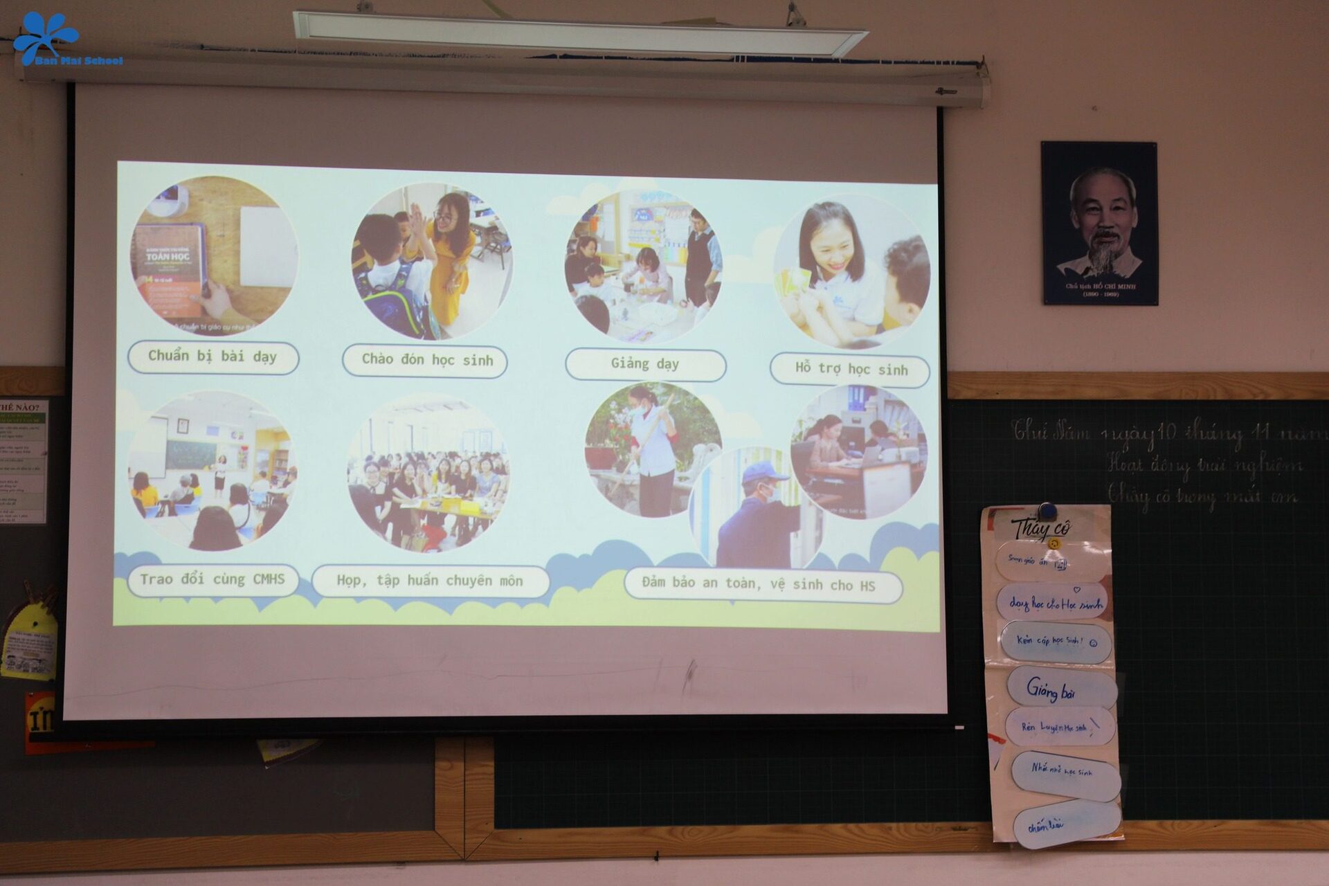 Bên cạnh đó, thông qua một video về công việc của thầy cô giáo cùng cán bộ, nhân viên tại Ban Mai, học sinh cũng có cơ hội nhận ra thông điệp: Mỗi thành viên trong nhà trường đều có một vai trò và nhiệm vụ khác nhau. Dù vất vả, gian nan nhưng mọi người vẫn luôn nỗ lực hết mình để mang lại cho các con những giá trị tốt đẹp nhất.