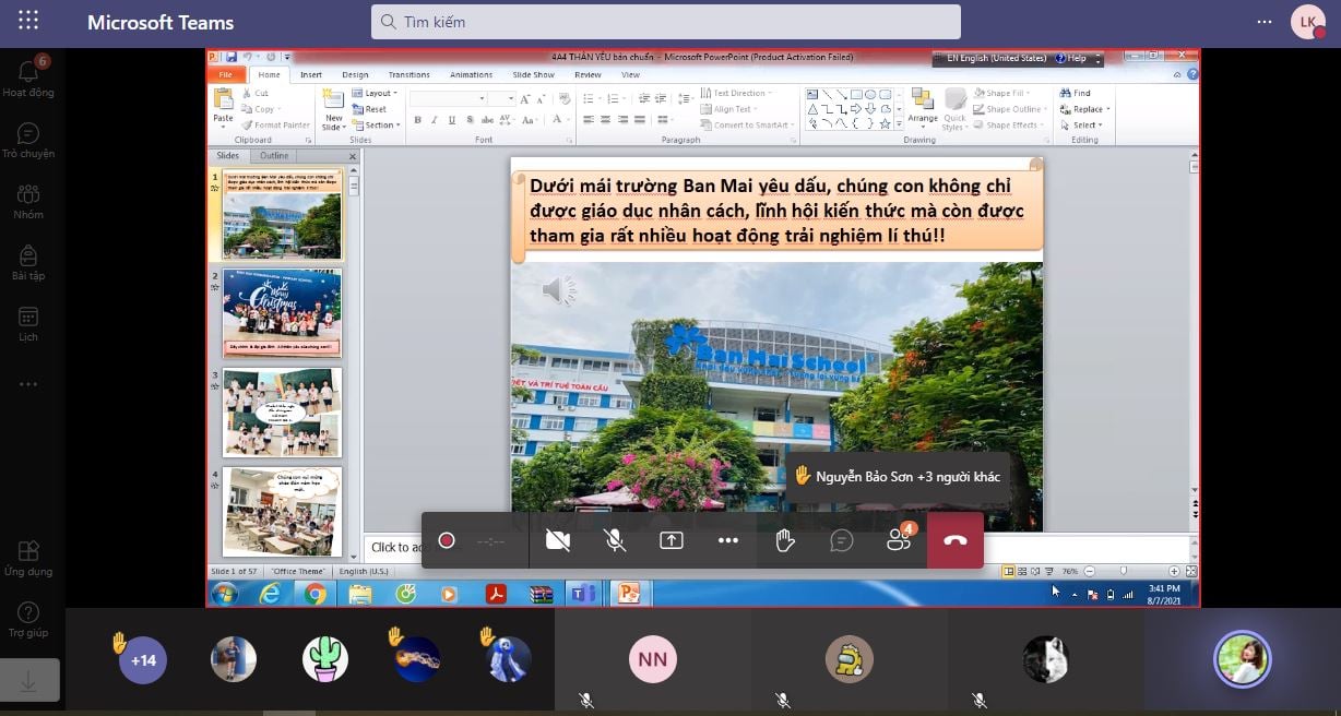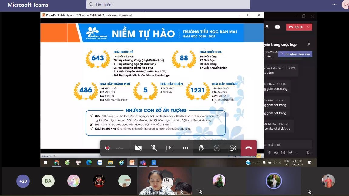 -Thực sự, trong quá trình chuẩn bị cho buổi tổng kết này, nhìn lại những hình ảnh của các con với hành trình từ đầu năm học cho đến hôm nay, cô vô cùng xúc động. 2 tháng qua không gặp lại – không chỉ là một khoảng thời gian dài trống vắng của trường, lớp, mà của chính các thầy cô. Cô tin các con cũng vậy, nhớ bạn bè, nhớ mái nhà chung Ban Mai vô cùng. – Cô giáo Phương Nga (tổ Tiếng Anh) chia sẻ tại không gian trực tuyến của lớp 3A1.