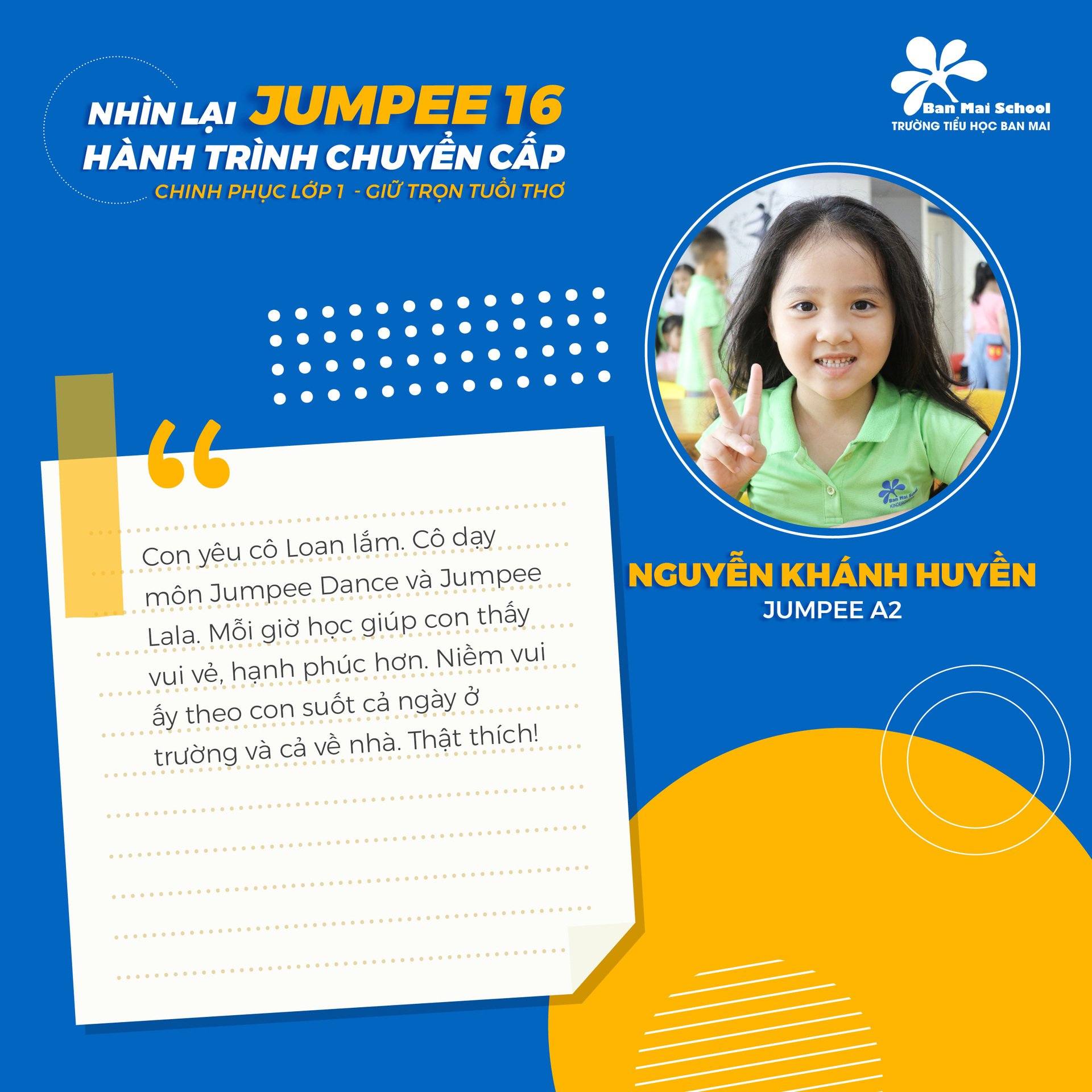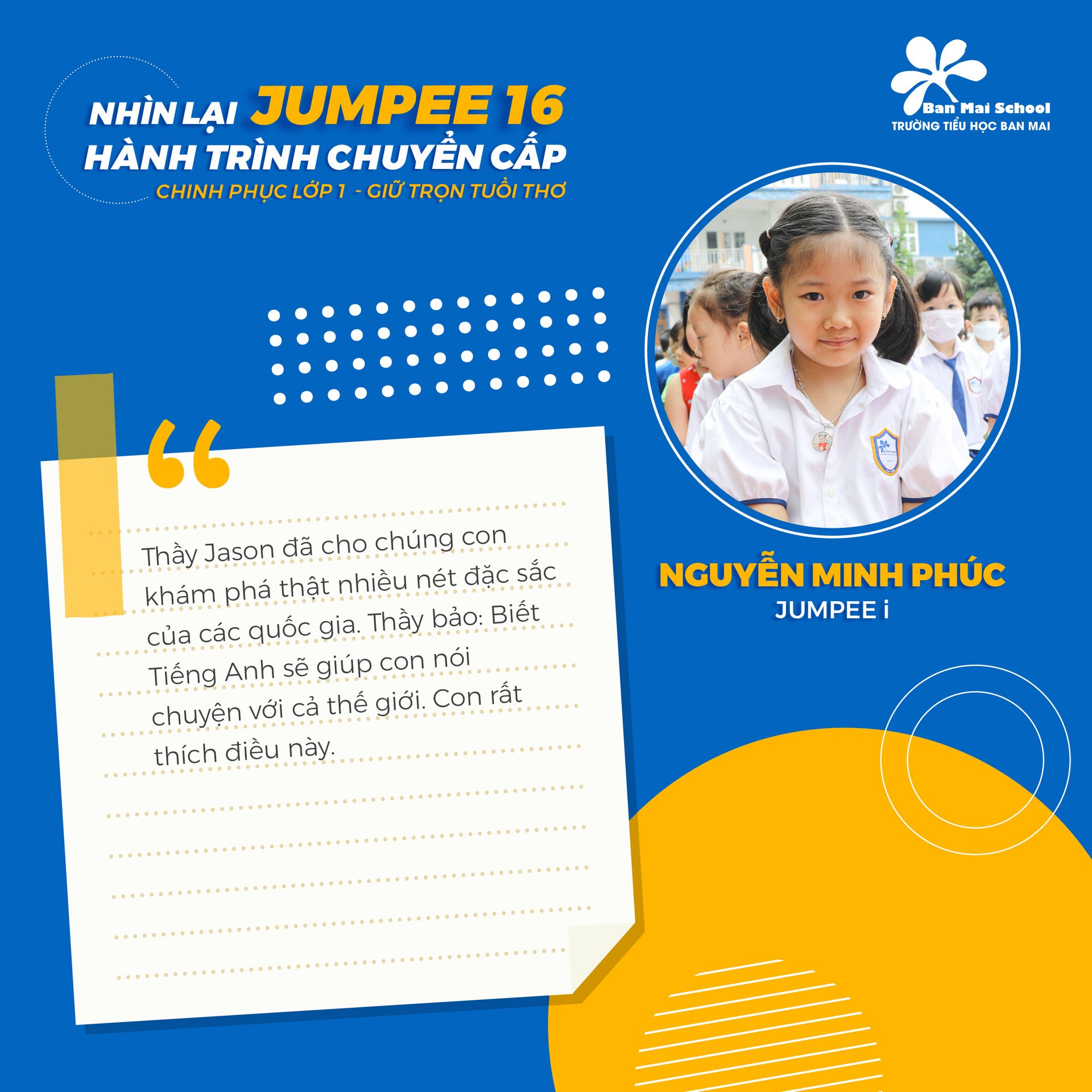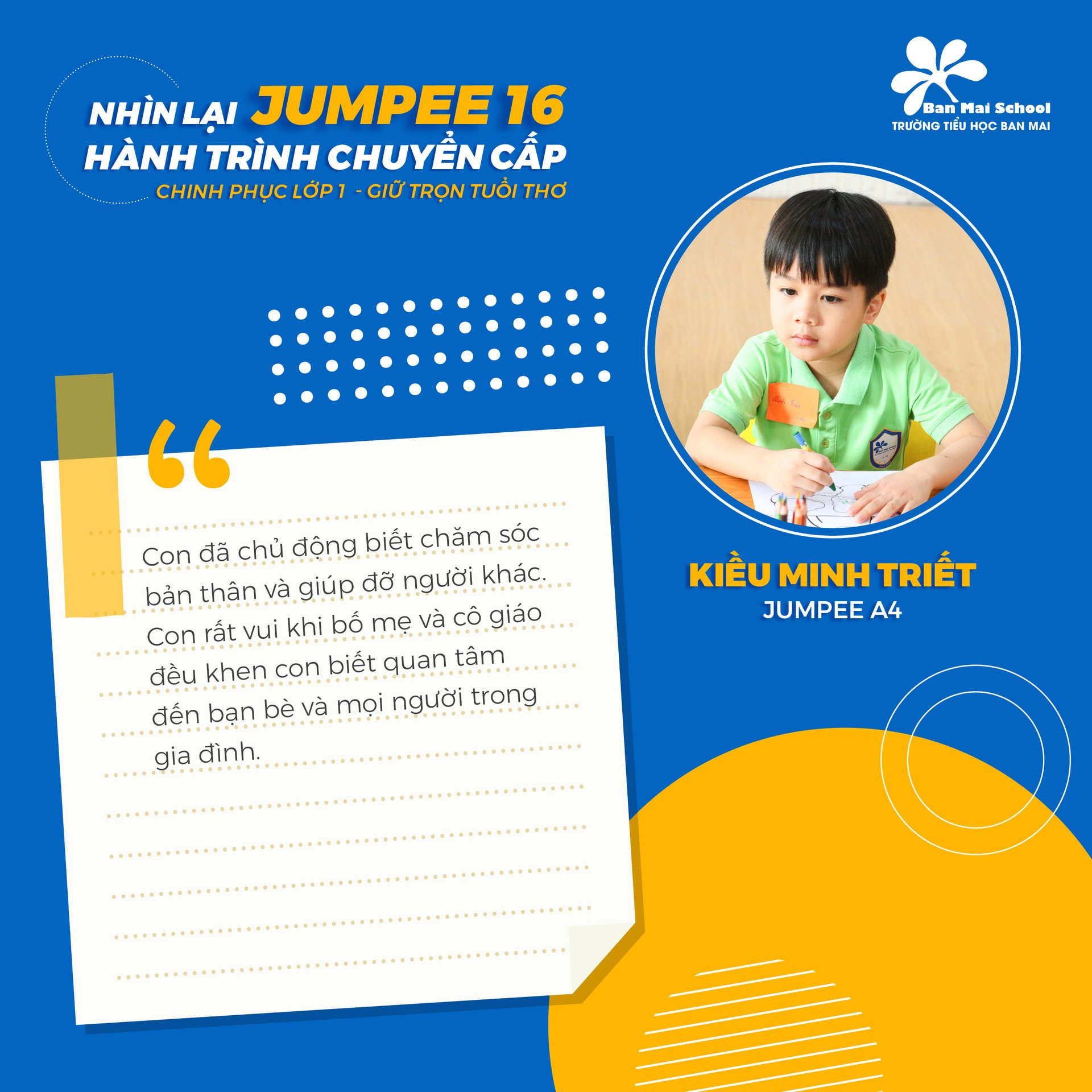 Kính mời bố mẹ cùng lắng nghe các BMSers khối Jumpee nói về LỚP HỌC HẠNH PHÚC của chính mình trên hành trình chuyển cấp chinh phục thành công. Thầy cô tự hào khi thấy các con thực sự trưởng thành với những hành trang vững chắc, sẵn sàng tâm thái bước vào lớp 1.