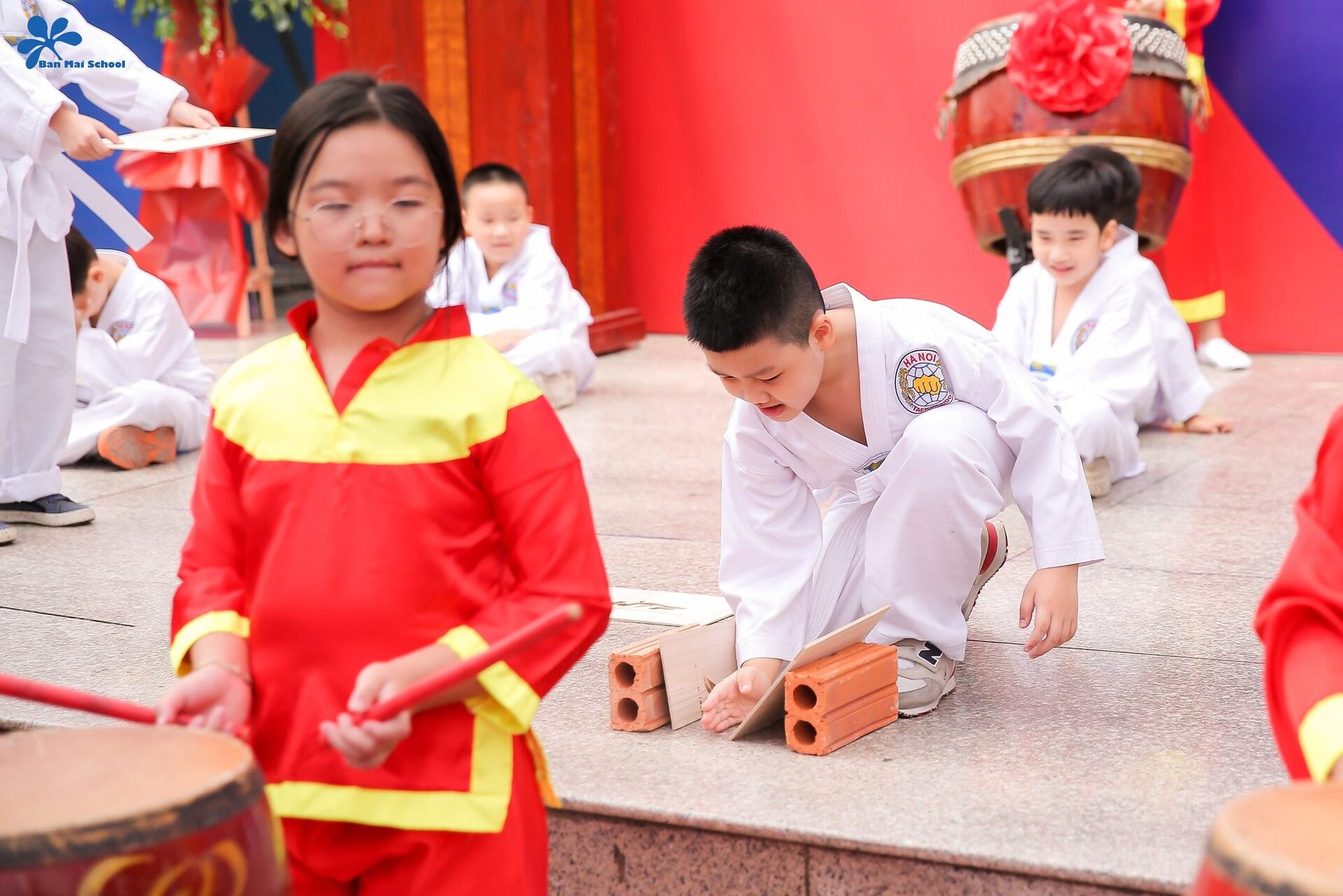 Chủ đề: “Yêu thương tạo sức mạnh” đã được thầy trò trường Tiểu học Ban Mai thể hiện rõ nét và ấn tượng qua phần trình diễn kết hợp giữa Trống hội – Võ thuật – múa hát “Ban Mai trường em”.
