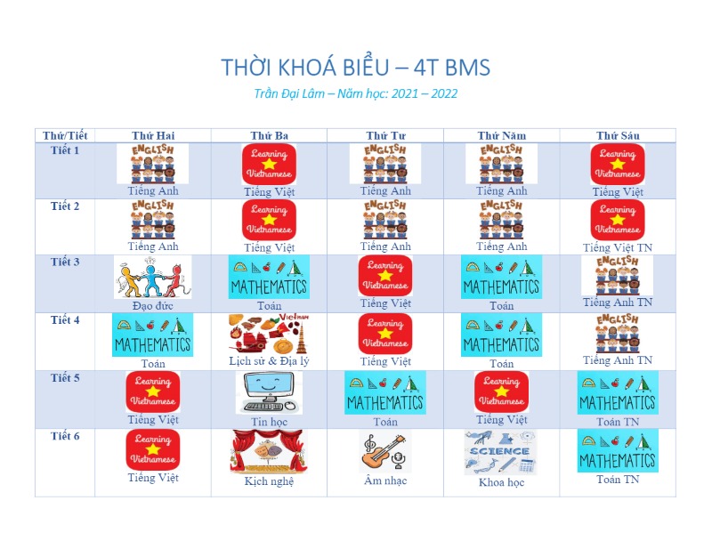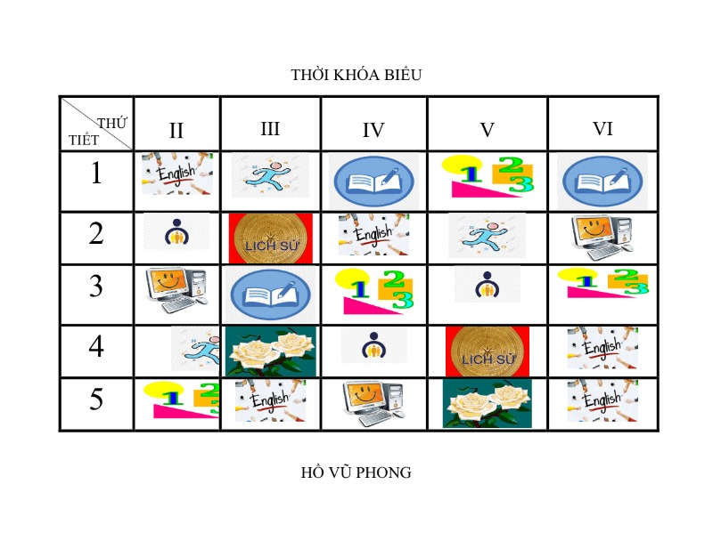Hay các con còn có những ý tượng tạo sáng tạo thiết kế ra những chiếc Thời khóa biểu bằng hình ảnh để tặng các em mới vào lớp 1, khi các em chưa biết đọc.