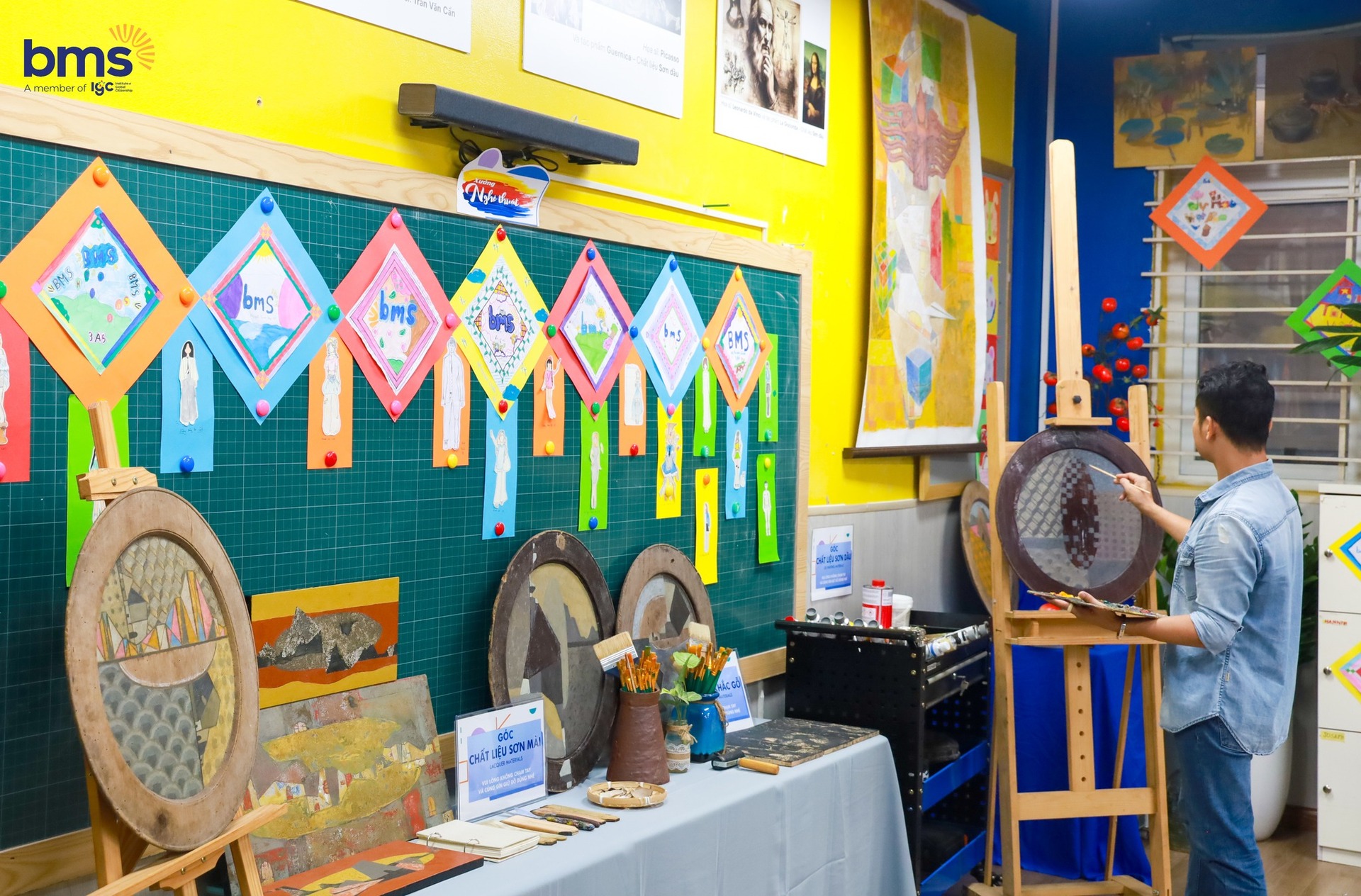 Mỗi bức tranh của học sinh đều được trân trọng trưng bày; mỗi nét cọ mang theo niềm tự hào và dấu ấn riêng. Trong từng góc nhỏ, triết lý giáo dục toàn diện của BMS được thể hiện một cách tự nhiên: học sinh phát triển tư duy sáng tạo, rèn kỹ năng, mở rộng hiểu biết, nuôi dưỡng thái độ tích cực và tìm thấy niềm vui – sự cân bằng tinh thần trong mỗi giờ học nghệ thuật.