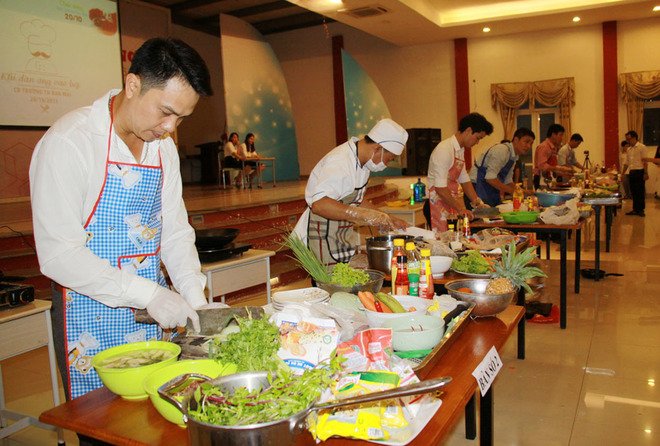 Nấu nướng không phải là sở trường, nhưng thầy giáo Trịnh Phi Lâm rất hào hứng với cuộc đua “vào bếp”. Thầy cho biết, hoạt động này rất ý nghĩa bởi giúp một bộ phận không ít cánh mày râu hiểu được vất vả trong công việc nội trợ.