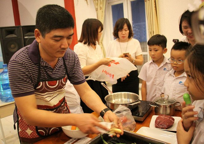 “Công việc chính của tôi là bác sĩ, rất bận rộn và ít khi vào bếp. Đây là lần đầu tiên tôi nấu ăn trước sự chứng kiến của vợ và rất đông bạn bè giáo viên trong trường. Sự cổ vũ nhiệt tình của các cô giáo khiến tôi nhận ra rằng, người đàn ông năng động thực sự phải là người biết chia sẻ với phụ nữ những công việc tưởng chừng rất đơn giản mà hàng ngày các vợ, các mẹ đang dành cho chồng con của mình. Nó mang một ý nghĩa cao cả, thông điệp của tình yêu thương trong mỗi gia đình”, anh Nguyễn Thành Bắc, chồng cô giáo Nguyễn Thanh Nương nói.