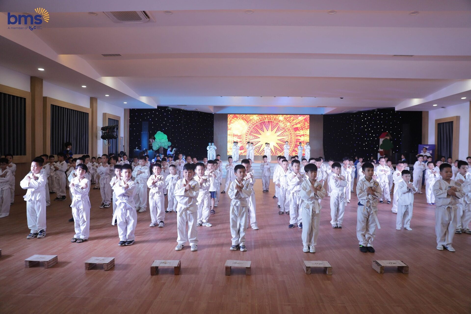 Cùng với đó, các tiết mục thể hiện khí thế bùng cháy, tinh thần mạnh mẽ như Võ thuật Hào khí Việt Nam (Học sinh khối 1), Đồng diễn bóng đá bóng rổ (Học sinh khối 4,5), Yoga đồng diễn (Học sinh khối 2), Lập trình nhí (Học sinh khối 4,5) đã để lại nhiều ấn tượng và cảm xúc đặc biệt.