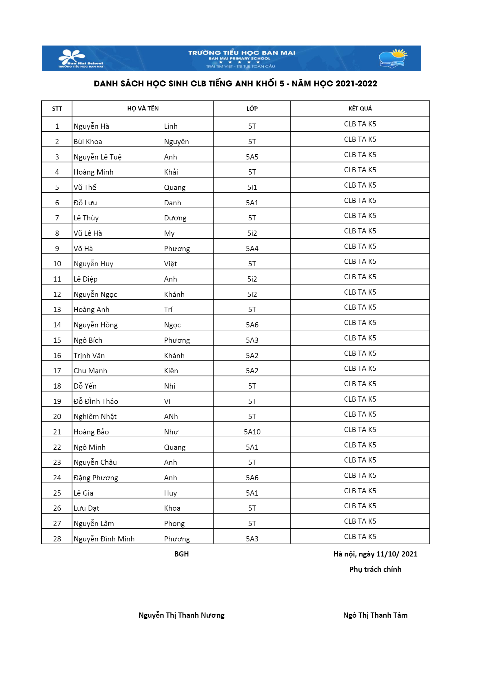 Thư chúc mừng BMSers tham gia CLB Tiếng Anh – giai đoạn 1