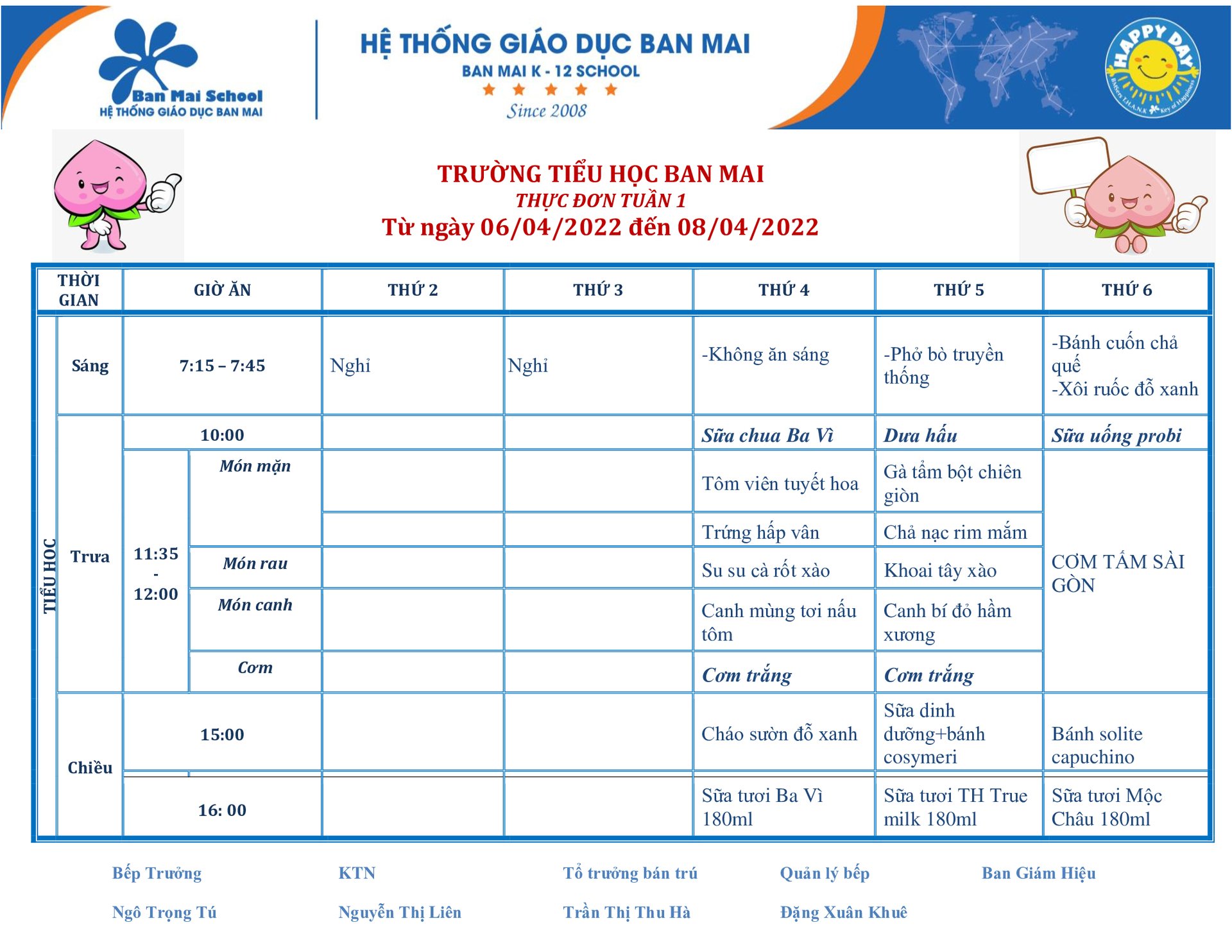 THỰC ĐƠN TUẦN 01.4.2022
