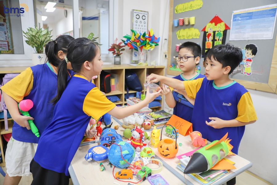 Trong chuỗi hoạt động Trung Thu, sự kiện gian hàng gây quỹ của các lớp học đã diễn ra thành công tốt đẹp, nhận được sự tham gia nhiệt tình từ đông đảo BMSers, giáo viên và các bậc Cha mẹ. Để gây quỹ hỗ trợ đồng bào bị ảnh hưởng bởi cơn bão Yagi, mỗi lớp đã tổ chức một gian hàng gây quỹ ngay tại lớp học. Các em học sinh đã tự mang đến những món đồ tái chế, sách truyện, đồ dùng học tập còn mới và những món đồ chơi yêu thích để đóng góp vào gian hàng.