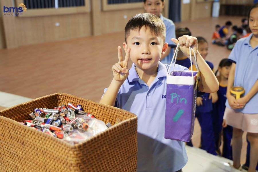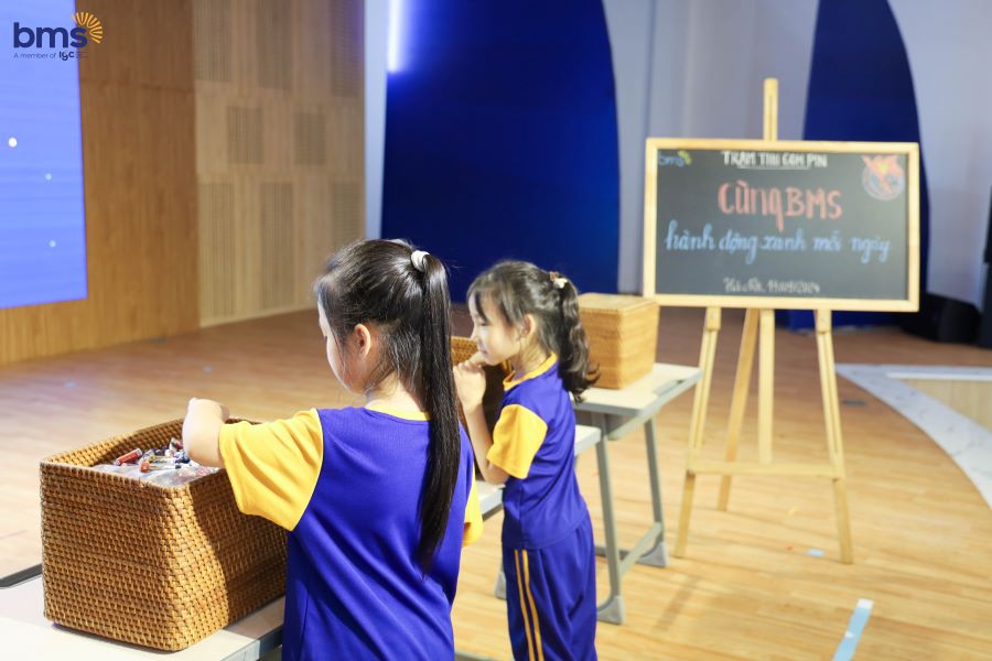 Bên cạnh sự kiện gây quỹ, chiến dịch thu gom pin đã qua sử dụng cũng là một điểm nhấn quan trọng trong chuỗi hoạt động Trung Thu Xanh tại BMS. Diễn ra từ ngày 11/9 đến 13/9, chiến dịch kêu gọi học sinh toàn trường thu gom và tái chế những viên pin cũ không còn sử dụng được, tránh gây ô nhiễm môi trường.