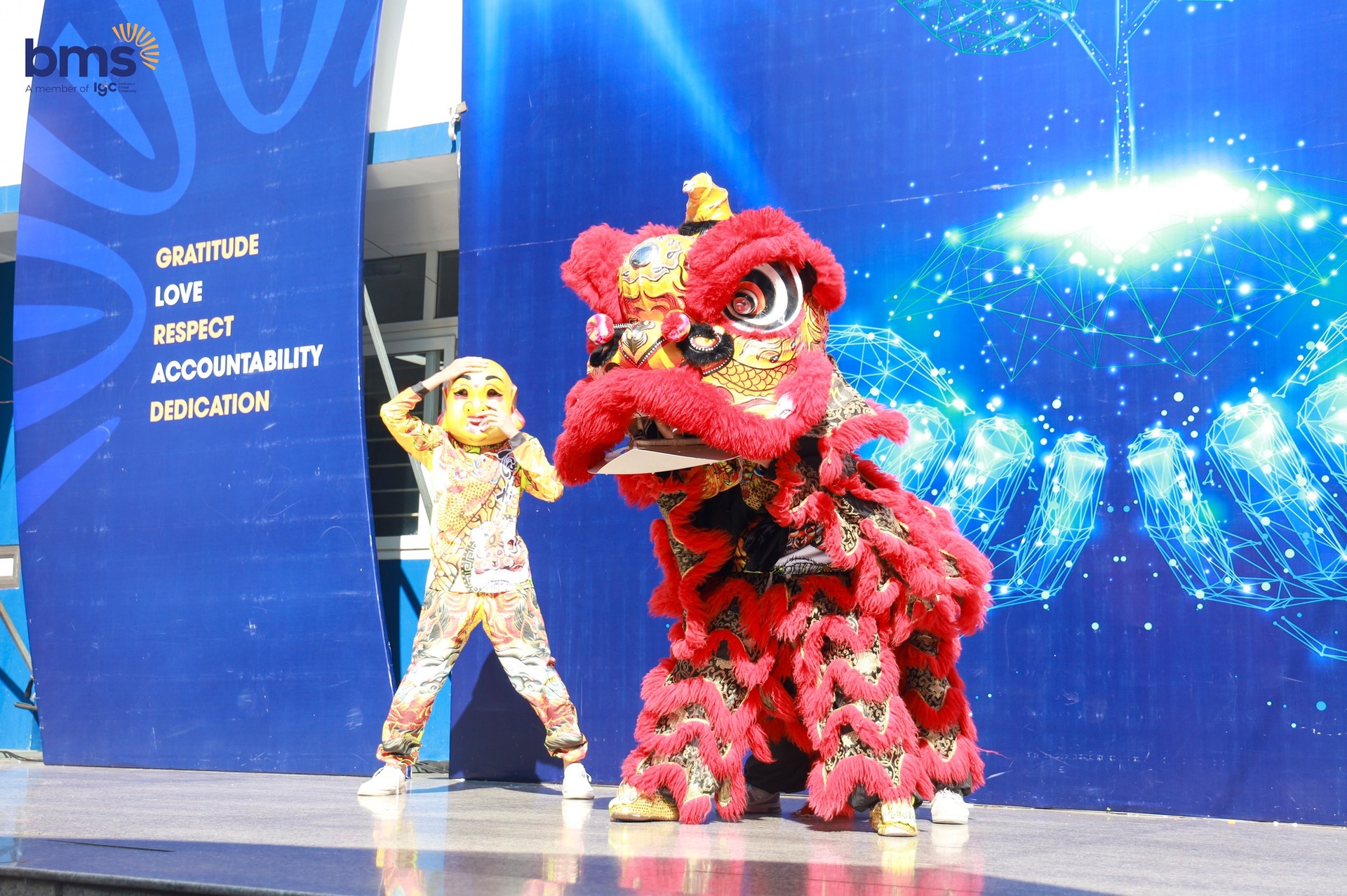 Ngày 3/10 vừa qua, sân trường BMS Hà Nội - Trường Tiểu học Ban Mai bừng sáng trong sắc màu Trung thu rộn rã. Từ sớm, tiếng trống lân vang lên giòn giã, kéo theo những gương mặt rạng rỡ, háo hức của các BMSers. Khắp khuôn viên trường, đèn lồng rực rỡ, mâm ngũ quả được bày biện tinh tế, và những điệu cười trong trẻo đã biến “Vui hội Trăng Rằm” thành một ngày hội ngập tràn năng lượng và yêu thương.